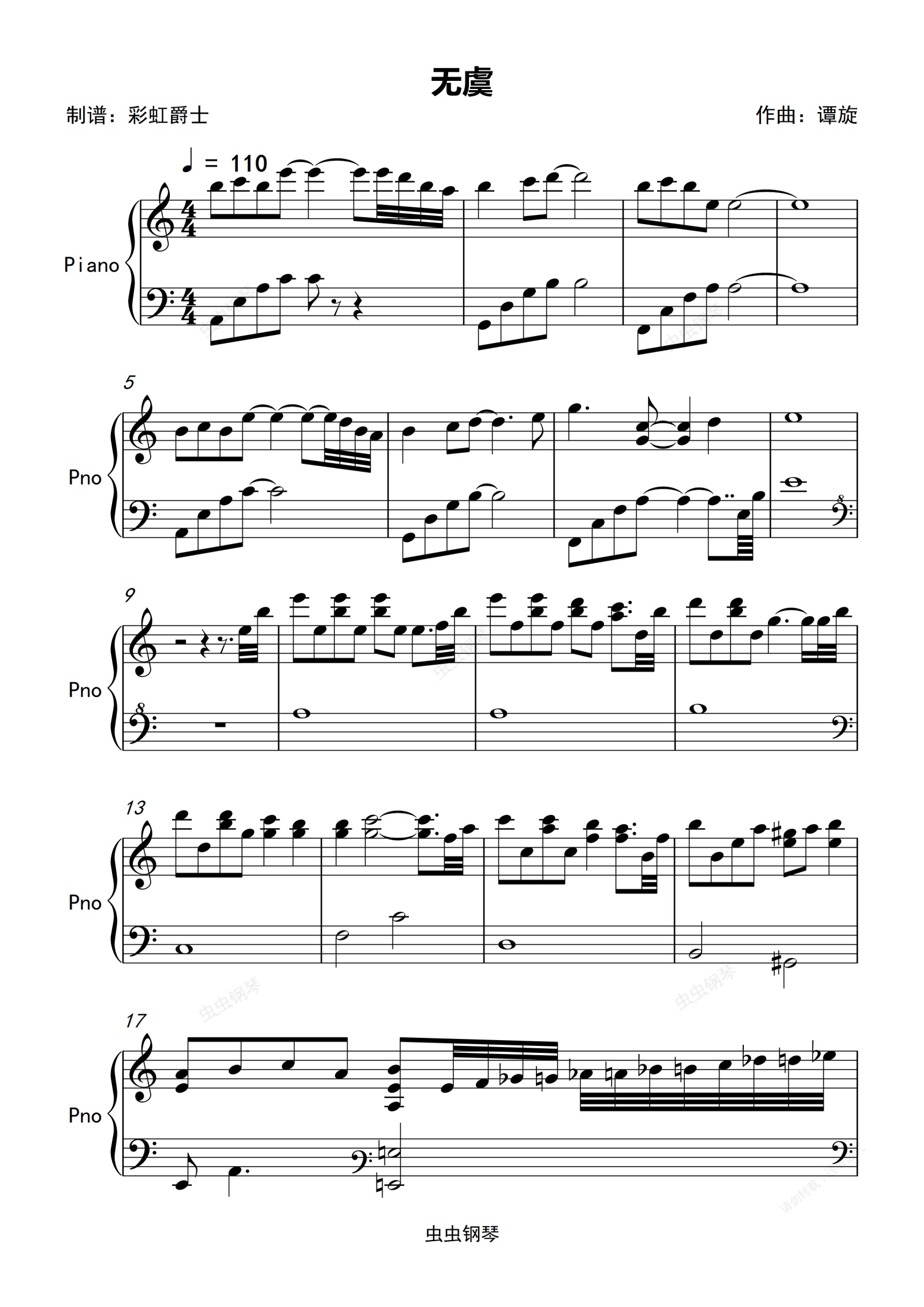 钢琴谱:无虞-周生如故概念曲 C调简单版