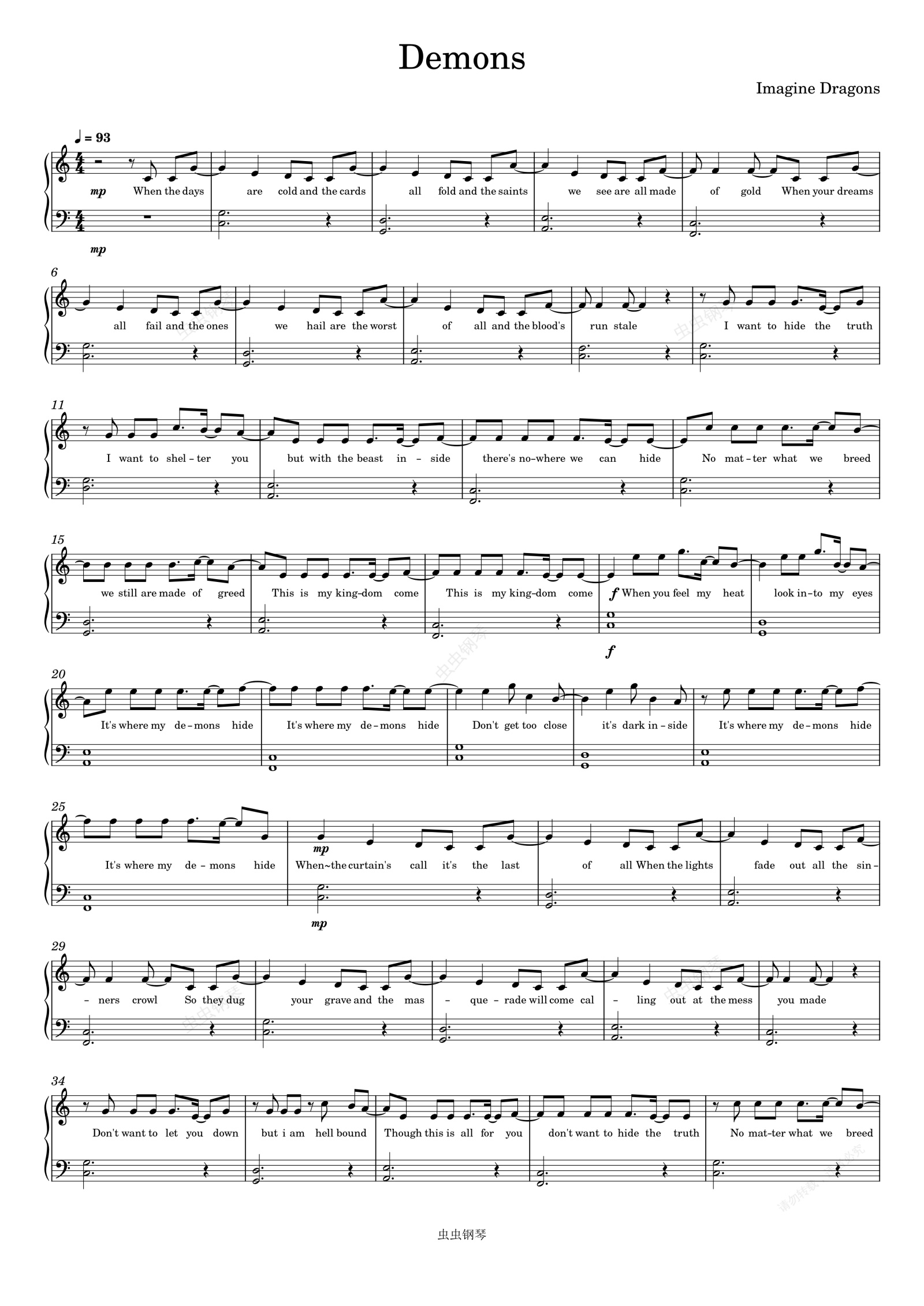 钢琴谱:Demons-Imagine Dragons