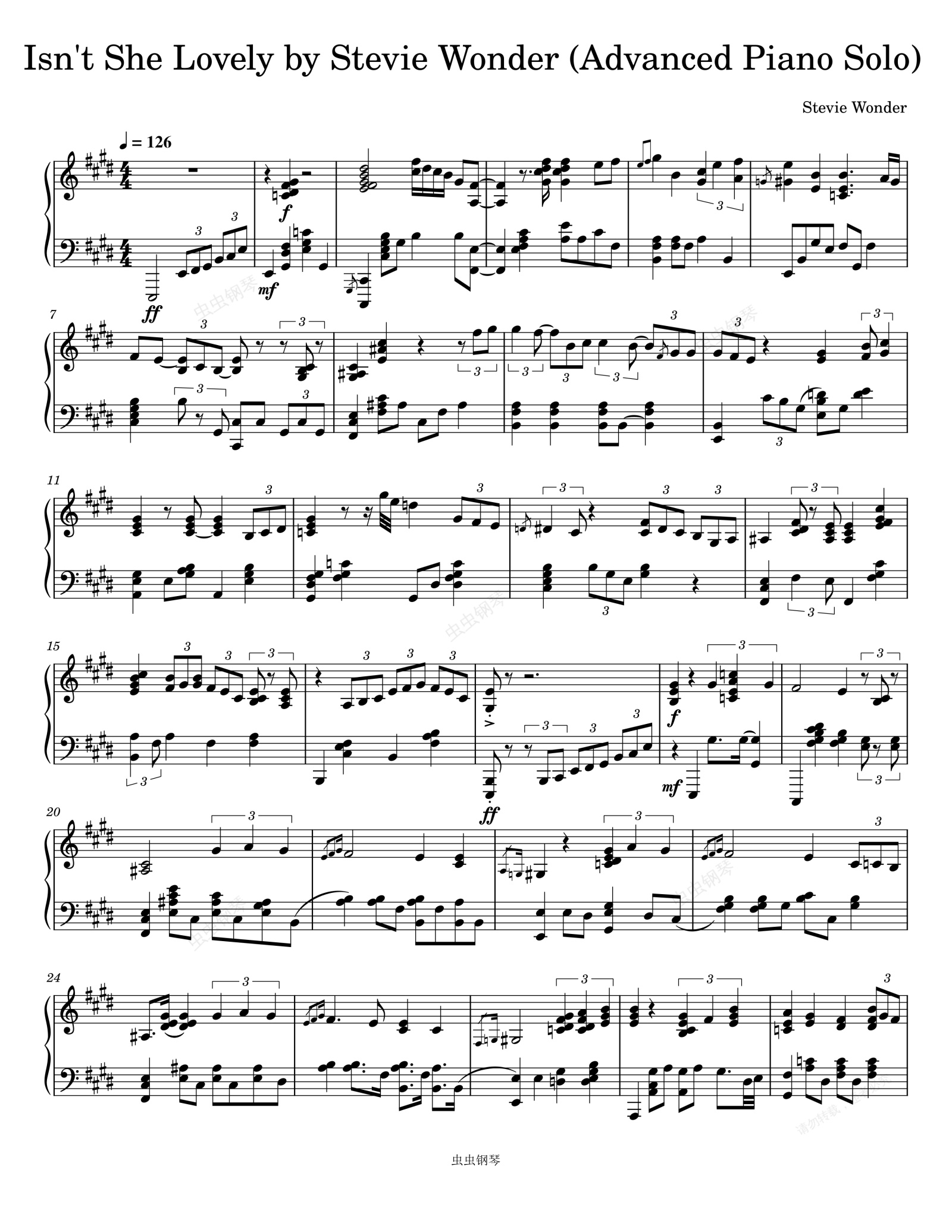 钢琴谱:Isn't She Lovely by Stevie Wonder (Advanced Piano Solo)