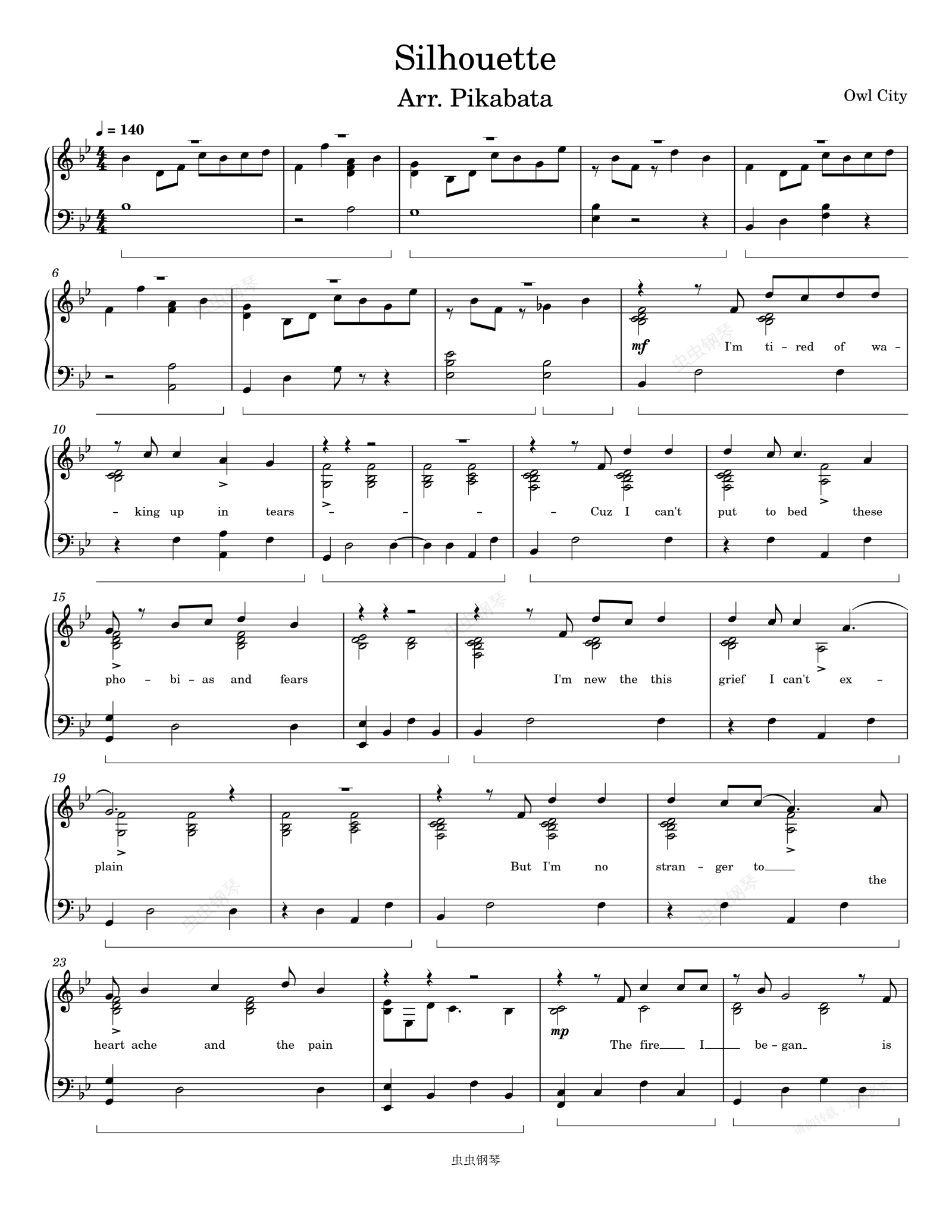 钢琴谱:Silhouette- Owl City