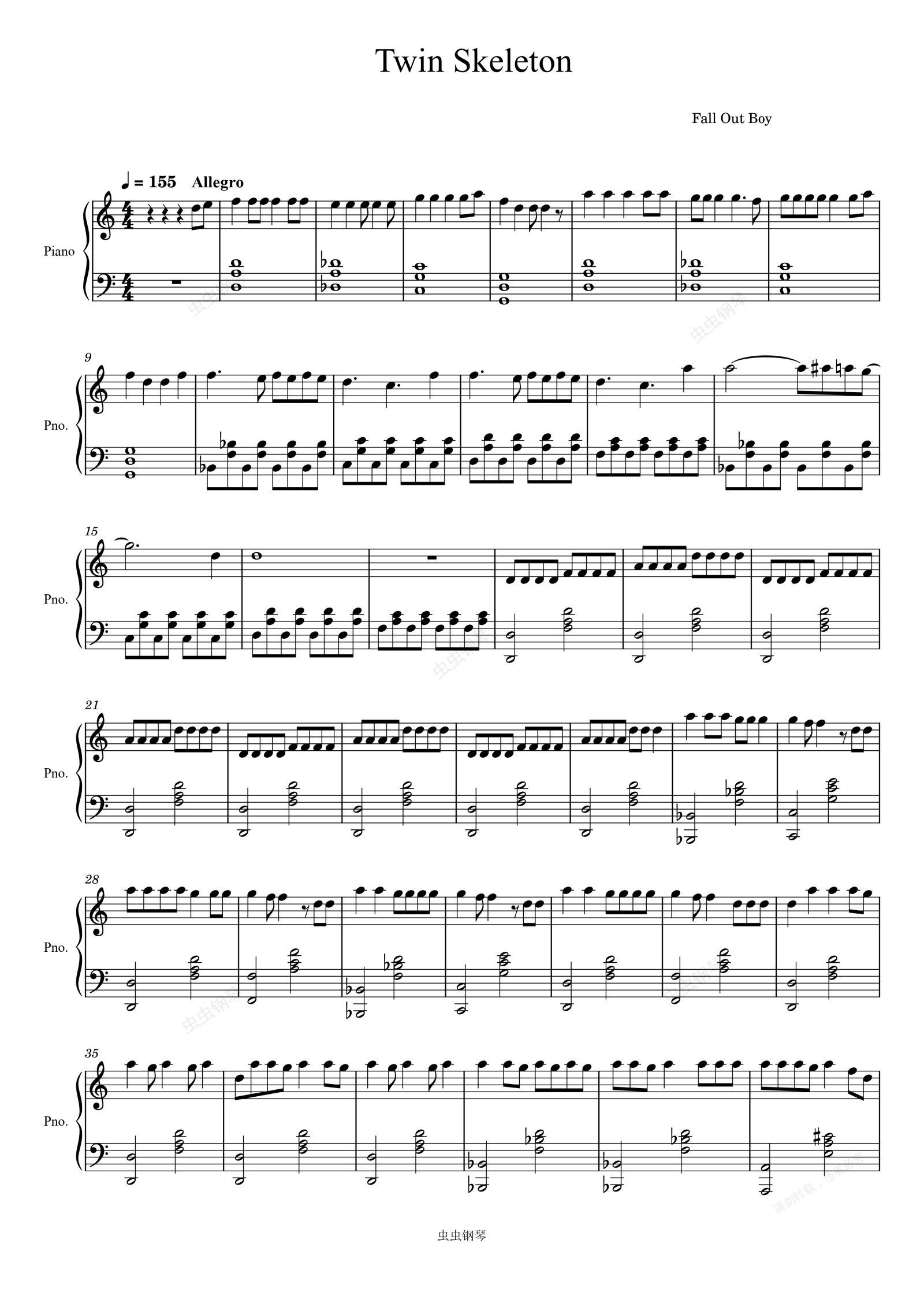 钢琴谱:Twin Skeleton's (Hotel In NYC)
