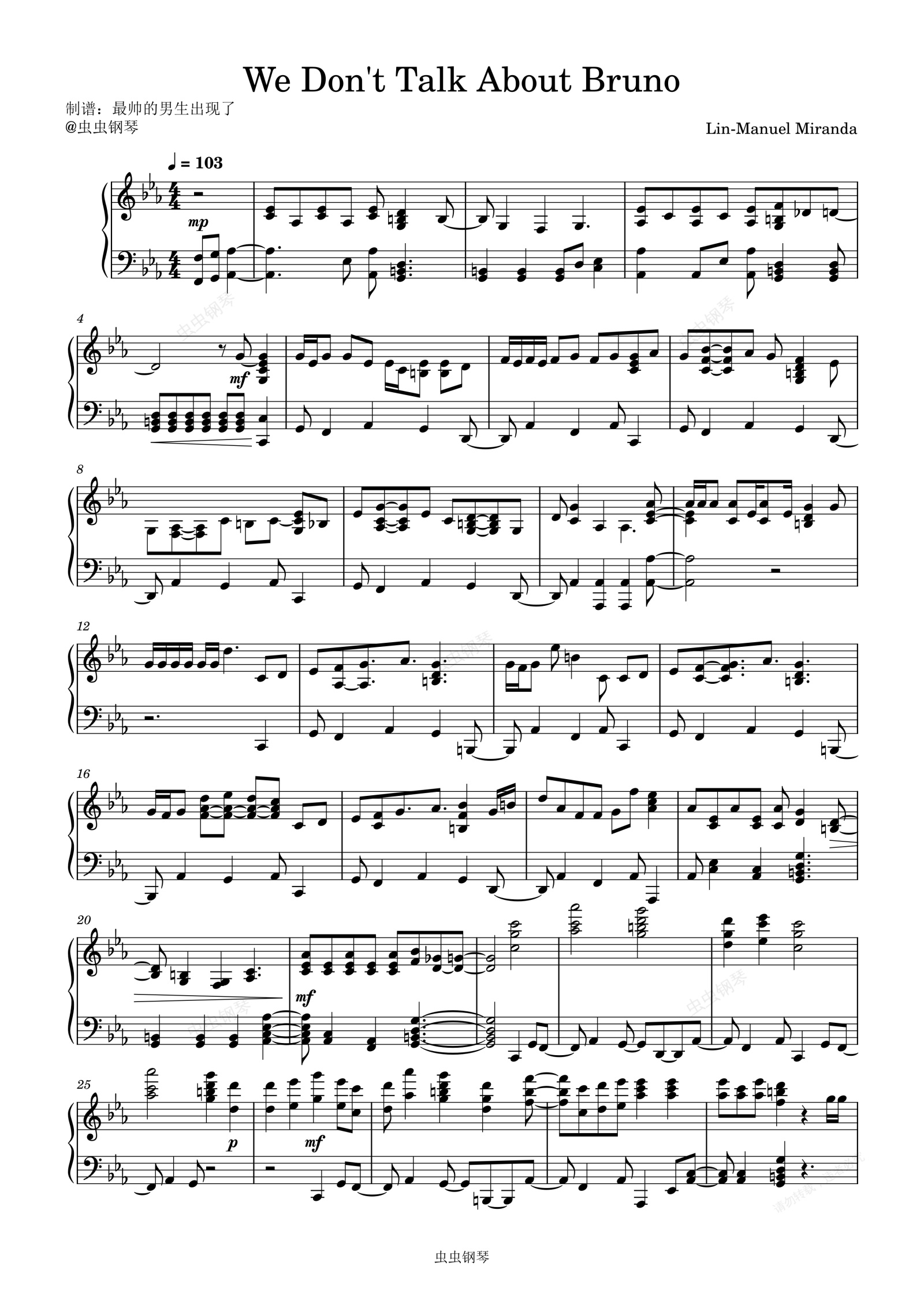 钢琴谱:We Don't Talk About Bruno (魔法满屋)