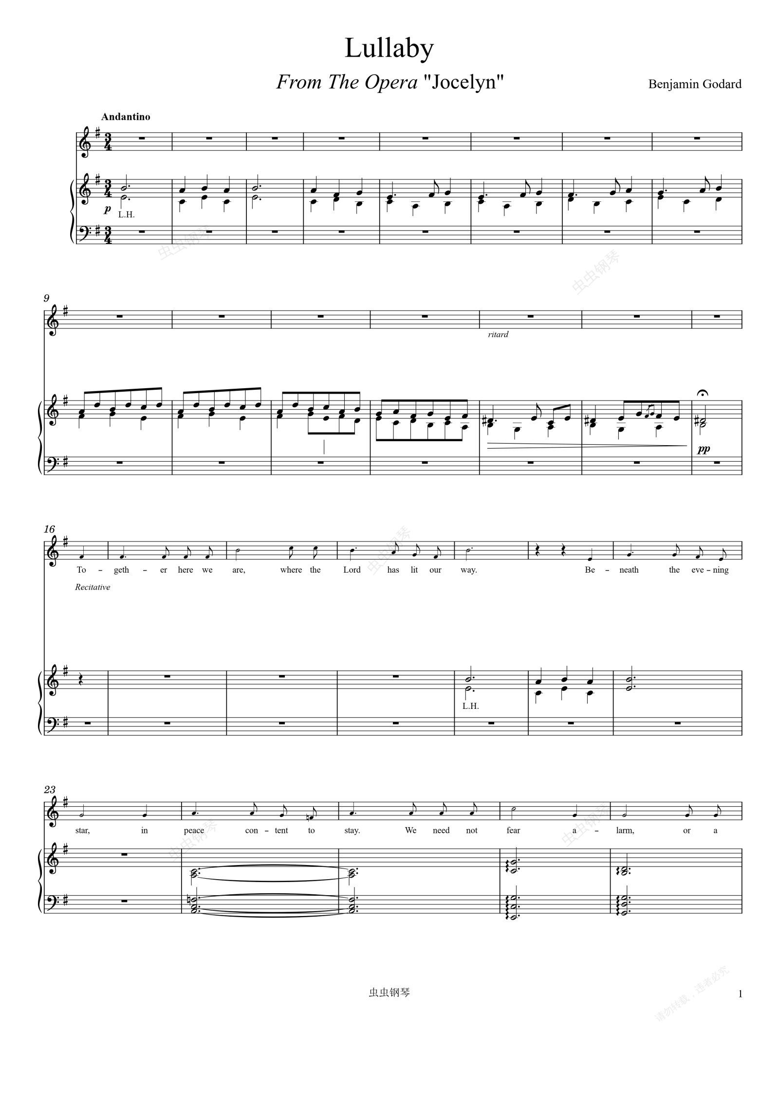 钢琴谱:Godard Lullaby from The Opera Jocelyn (piano and solo voice)