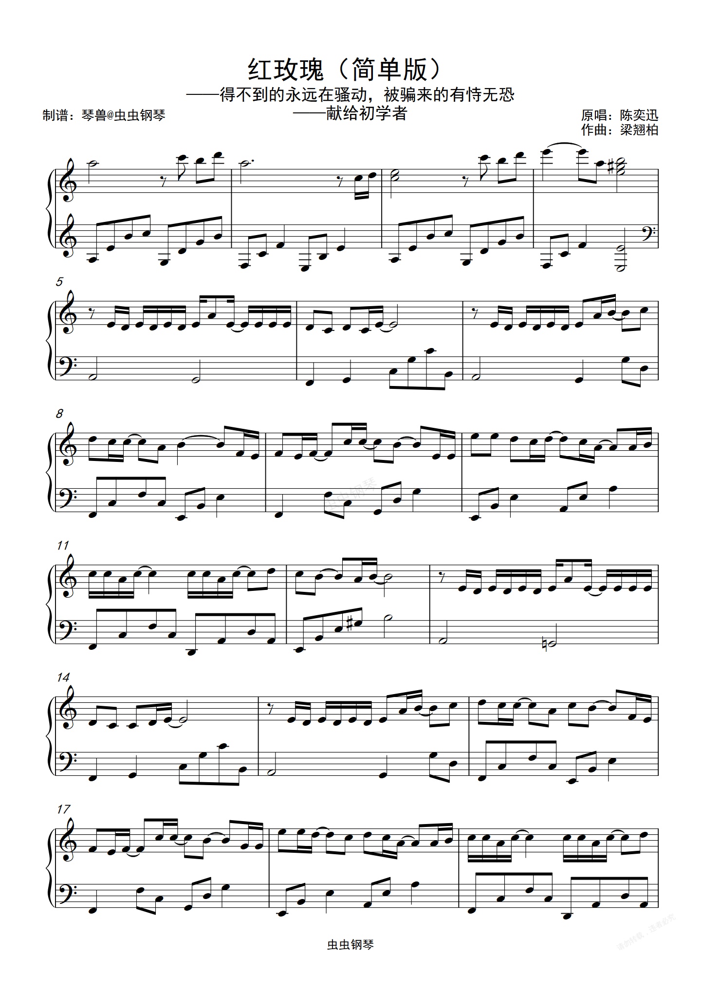 钢琴谱:红玫瑰-陈奕迅 琴兽简单版