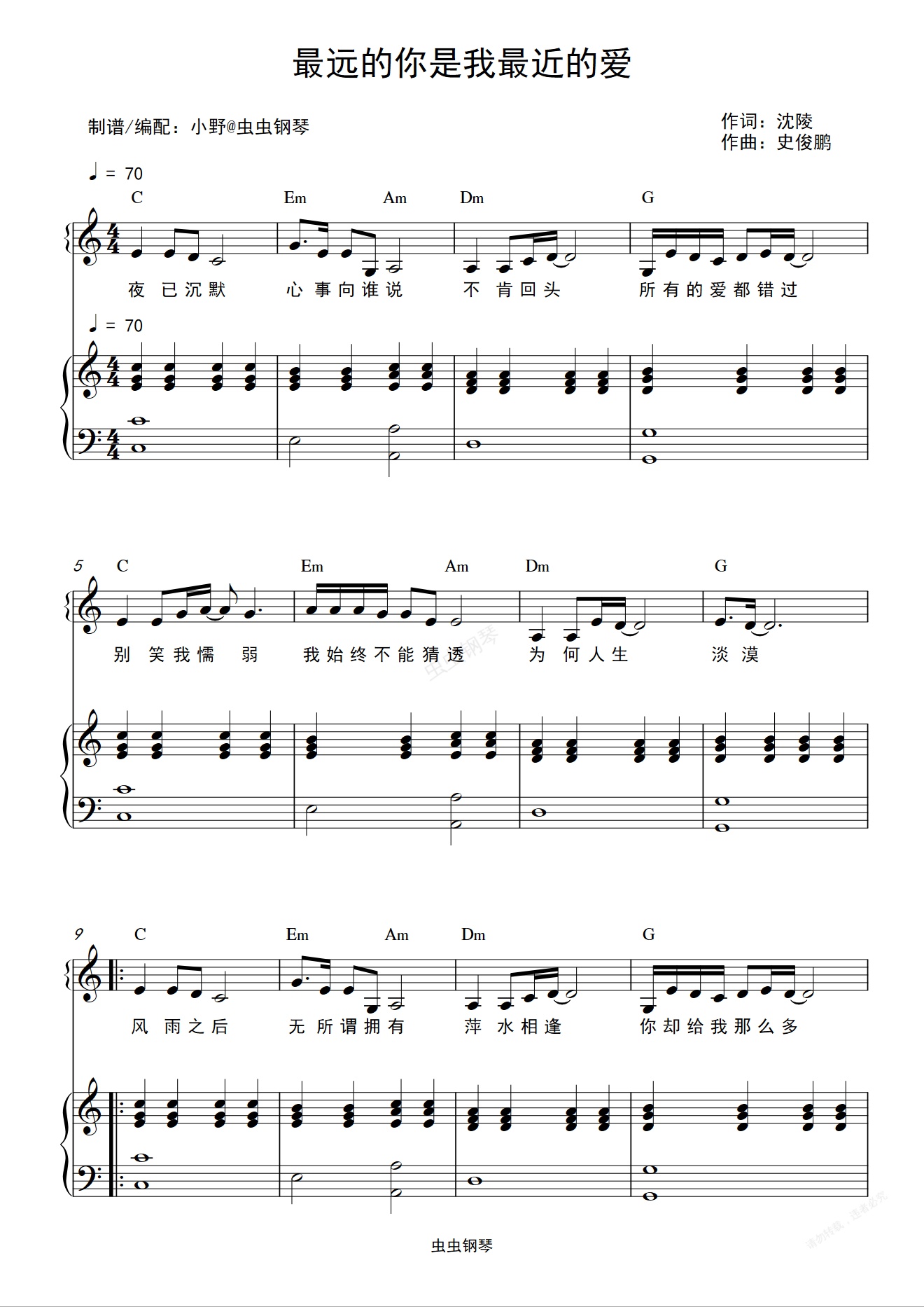 钢琴谱:最远的你是我最近的爱(和弦弹唱版)