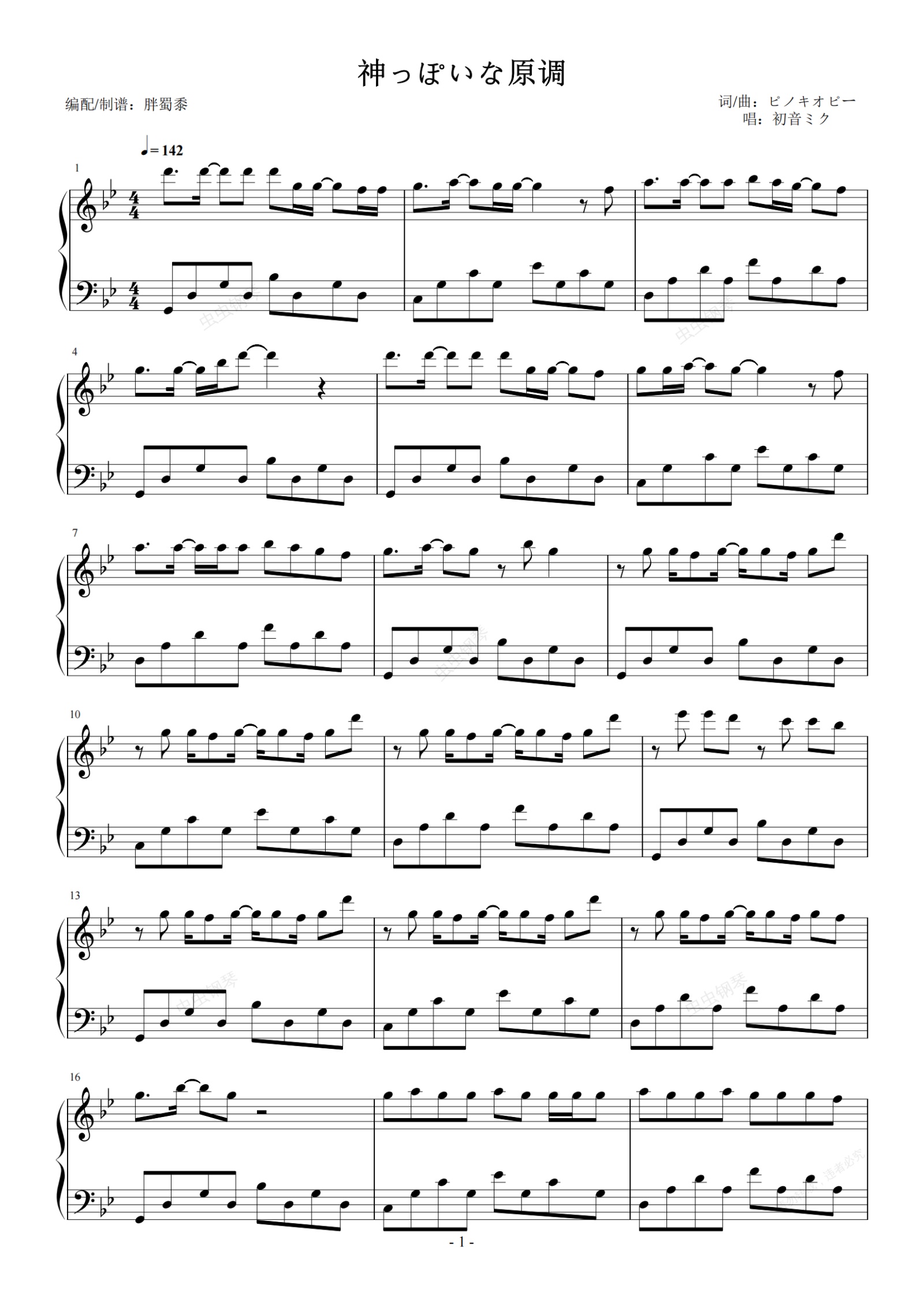 钢琴谱:初音miku-神っぽいな像神一样呐原调