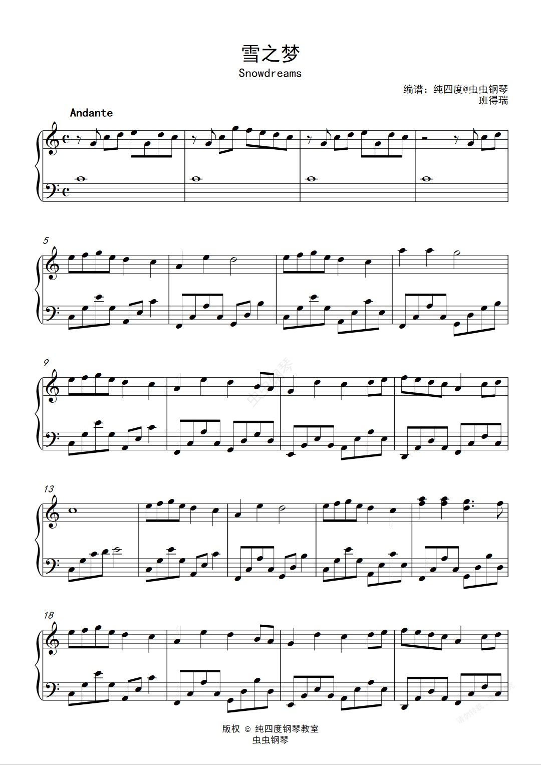 钢琴谱:Snowdreams(雪之梦)完美C调版