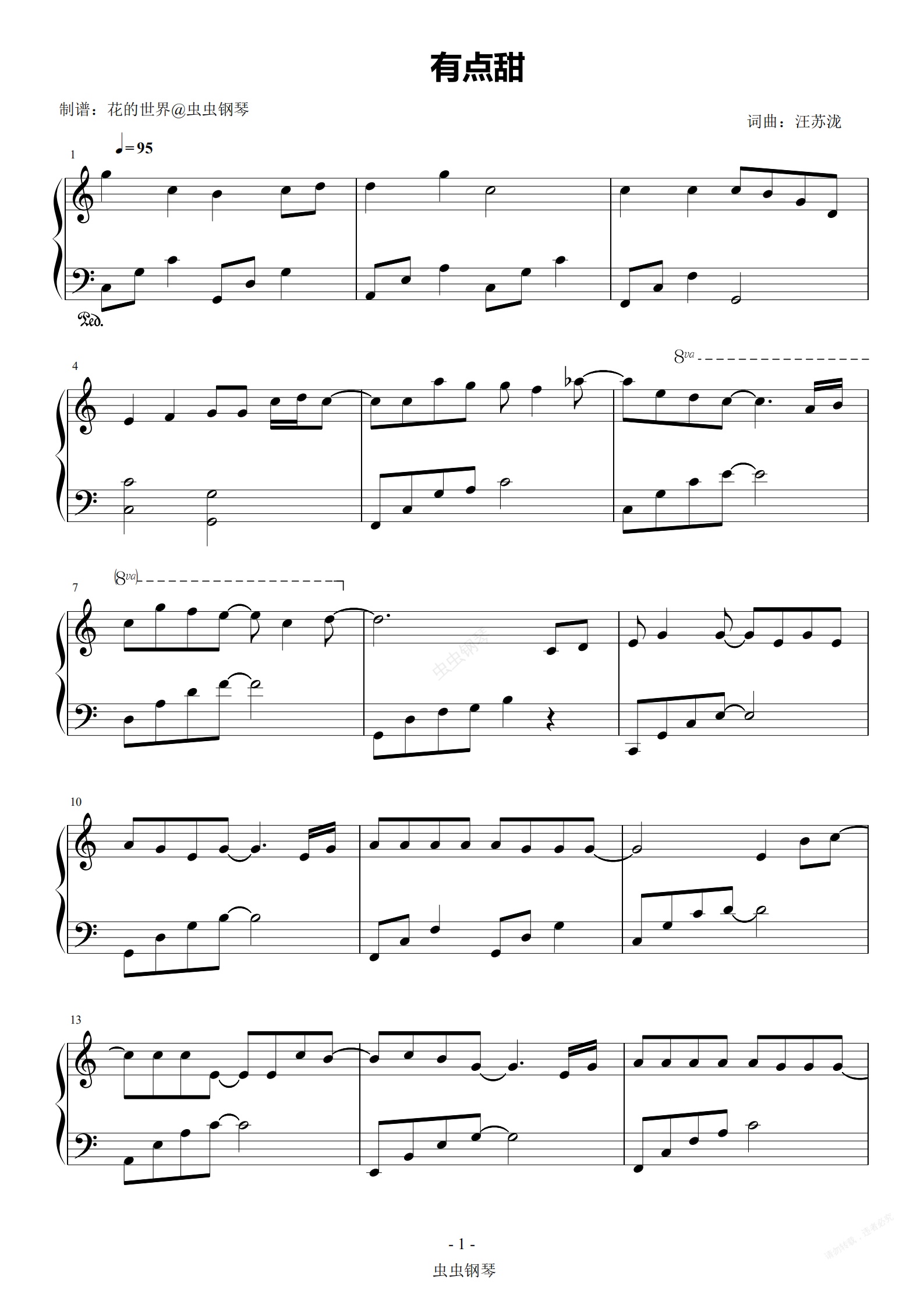 钢琴谱:有点甜 C调简易版 汪苏泷