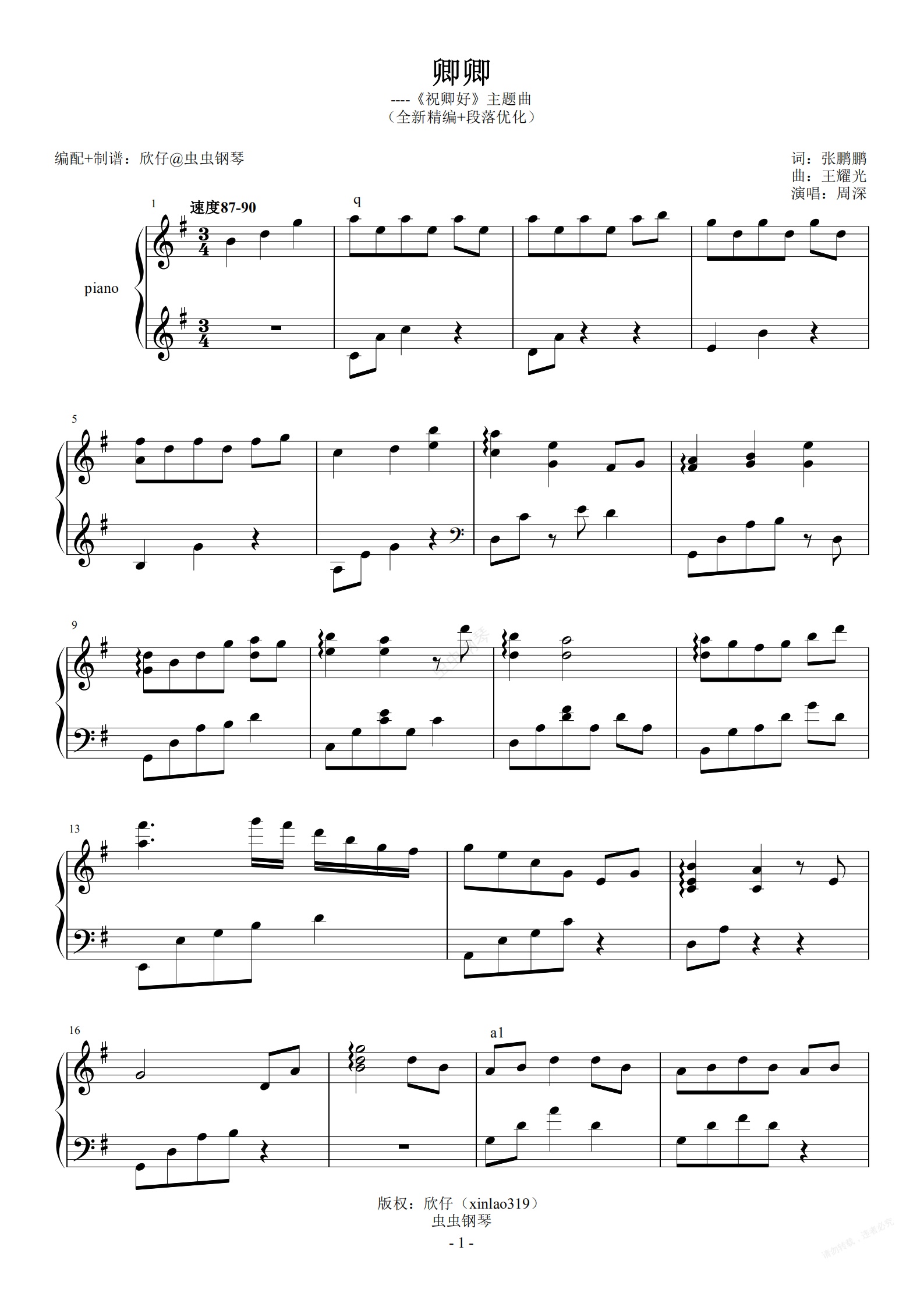 钢琴谱:周深-G《卿卿》(《祝卿好》主题曲、全新精编+段落优化)