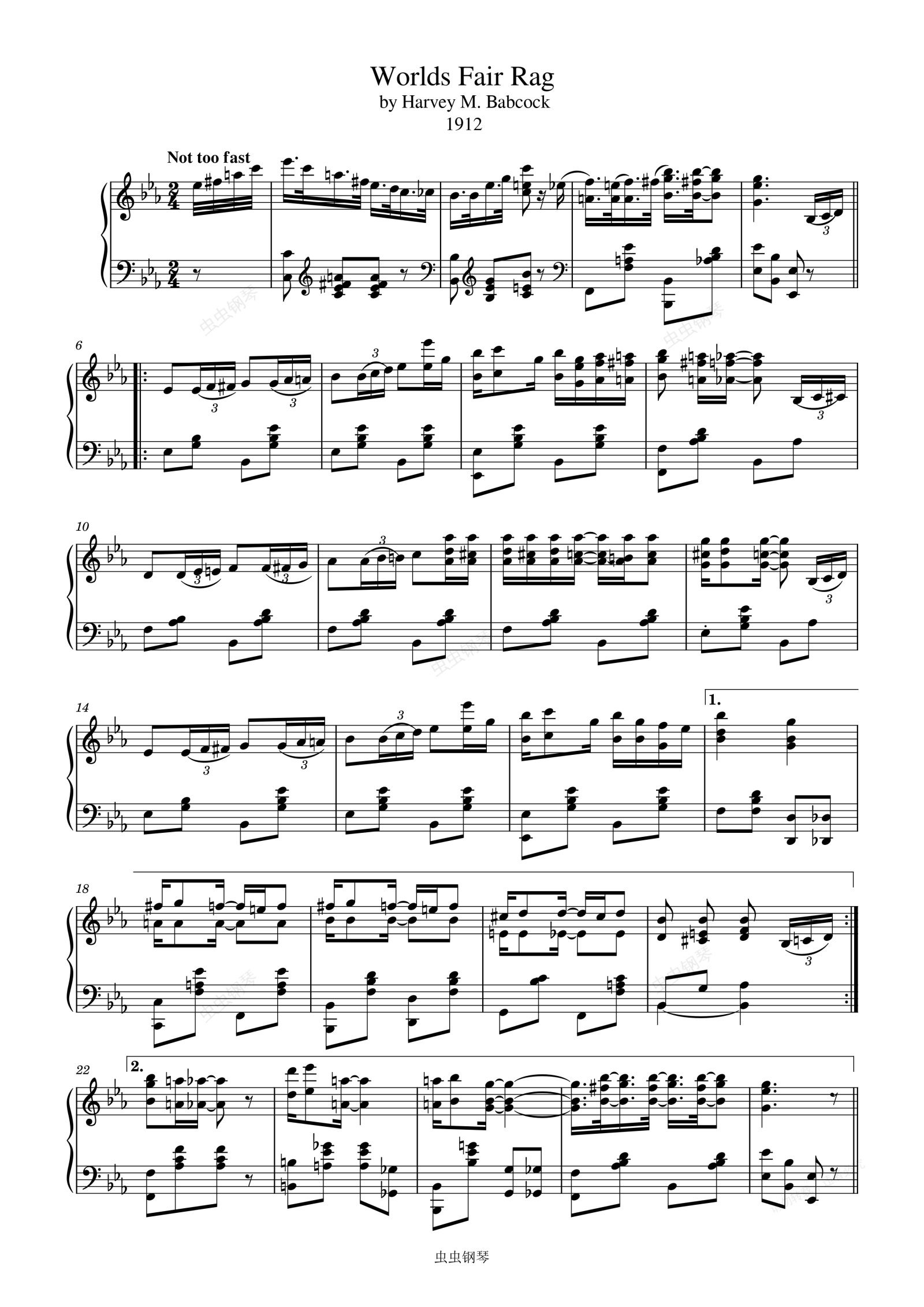 钢琴谱:Worlds Fair Rag by Harvey M. Babcock (1912)