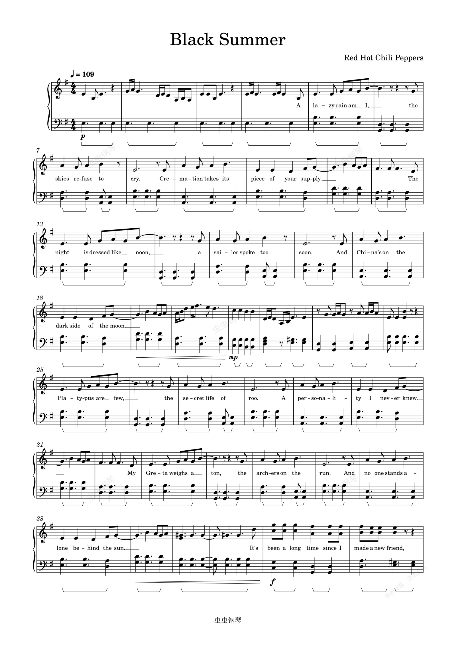 钢琴谱:Black Summer-Red Hot Chili Peppers