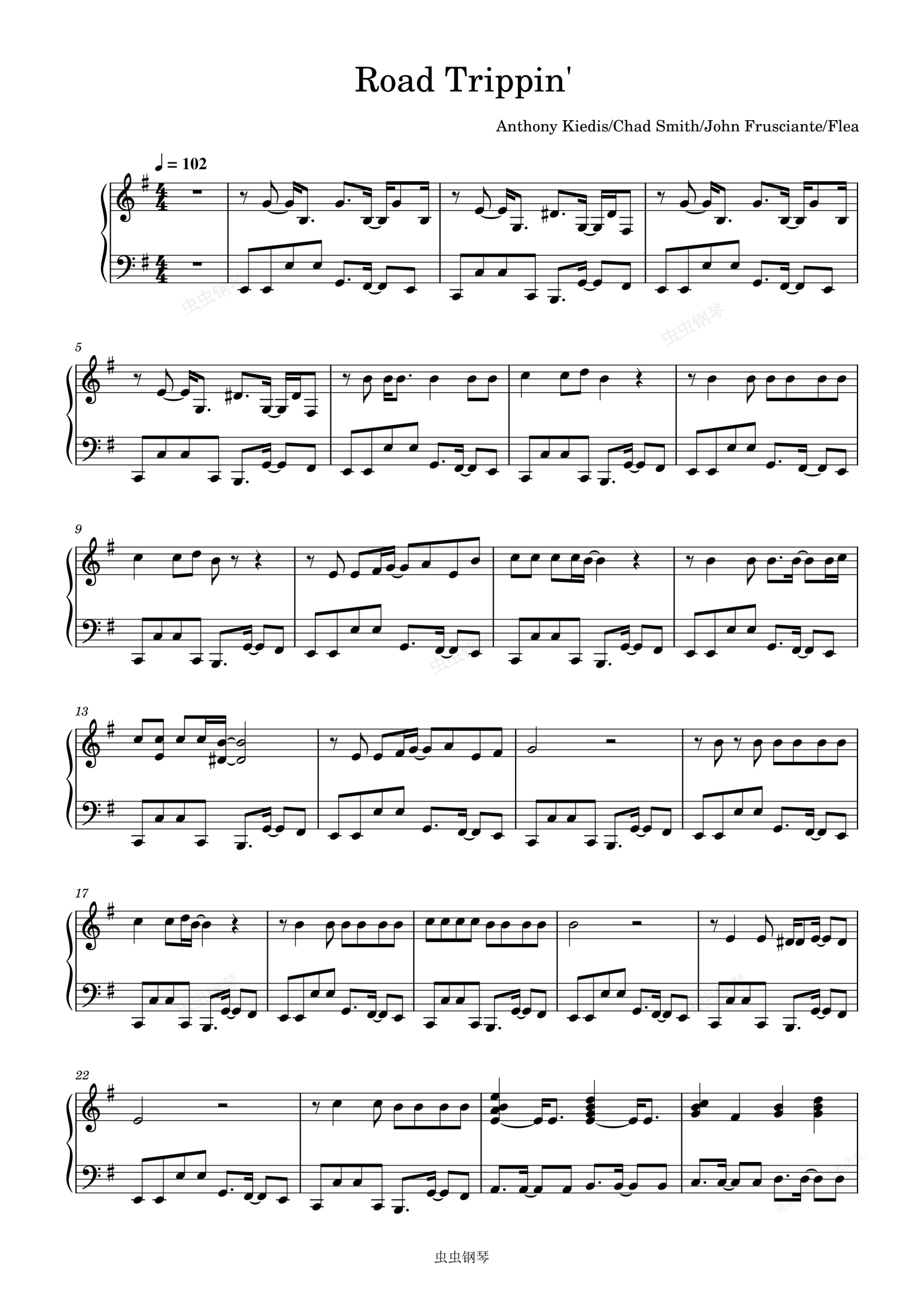 钢琴谱:Road Trippin'-Red Hot Chili Peppers