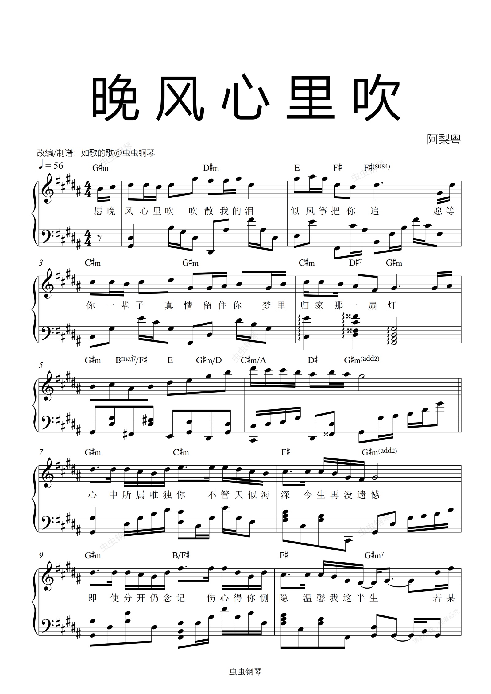 钢琴谱:晚风心里吹-复古港风粤语情歌原调可弹唱