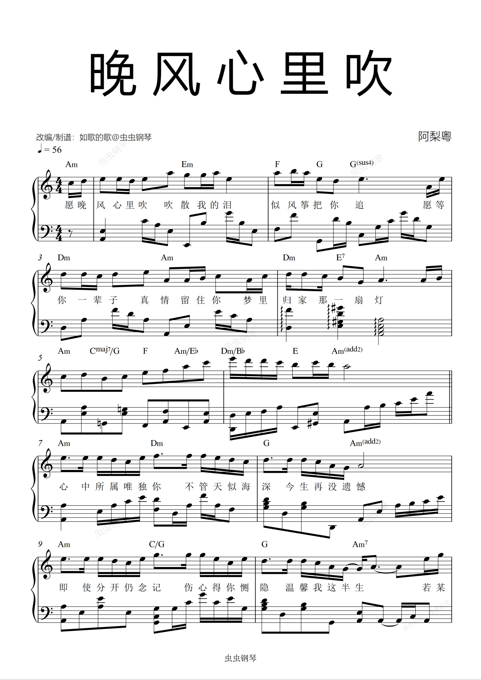 钢琴谱:晚风心里吹a小调-复古港风粤语情歌可弹唱