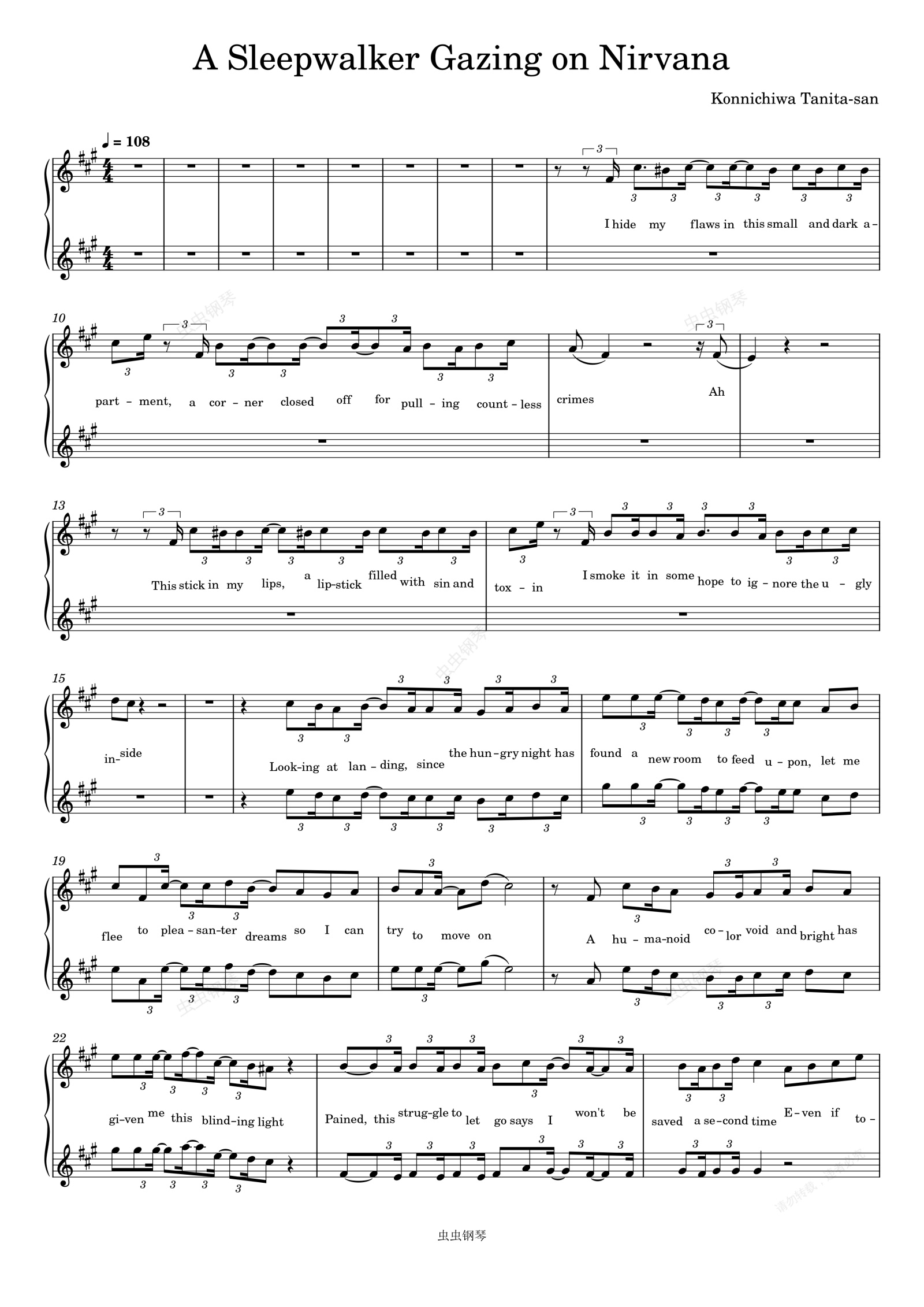 钢琴谱:A Sleepwalker Gazing on Nirvana