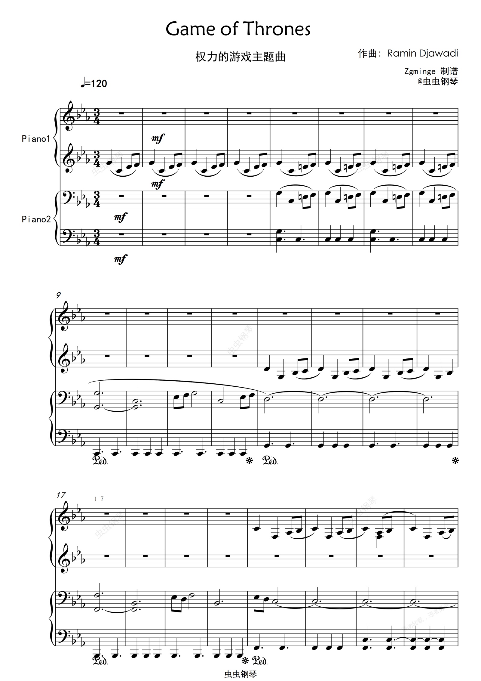 钢琴谱:权力的游戏主题曲四首连弹 Game of Thrones