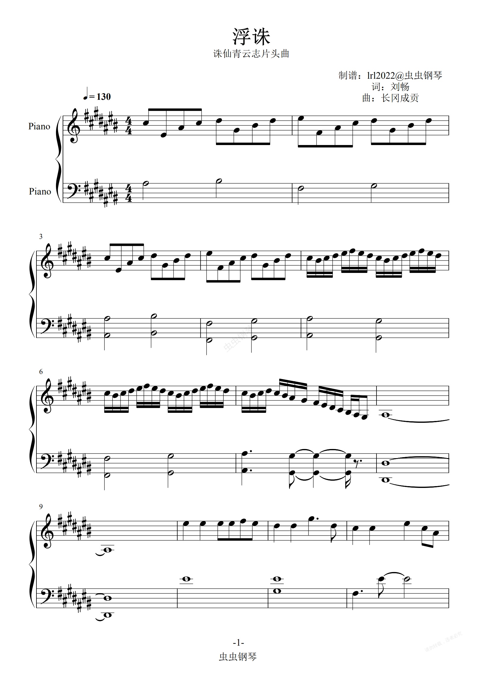 钢琴谱:浮诛-诛仙青云志片头曲-张杰-五线谱-简谱-钢琴谱