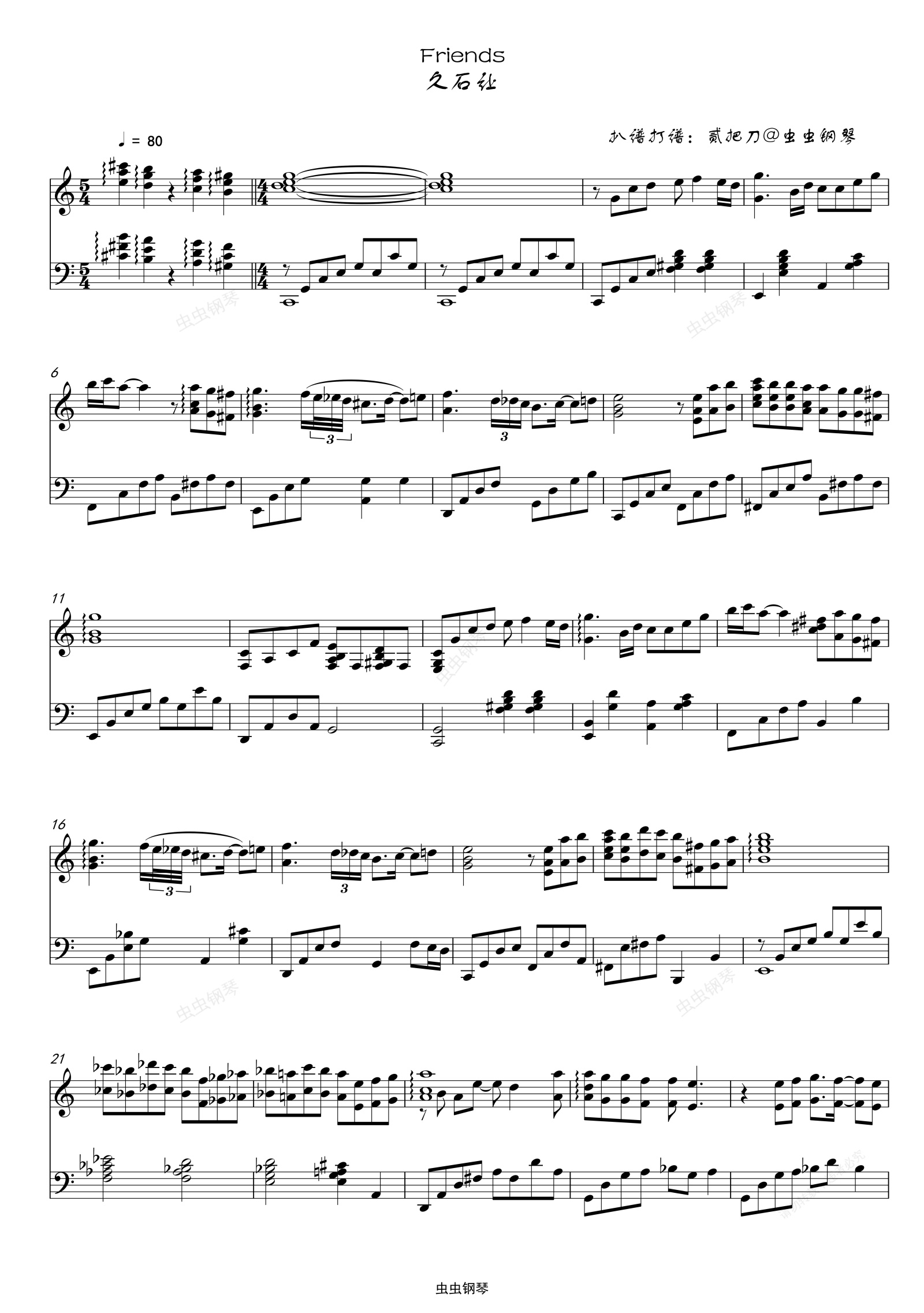钢琴谱:Friends 久石让 (ひさいし じょう)