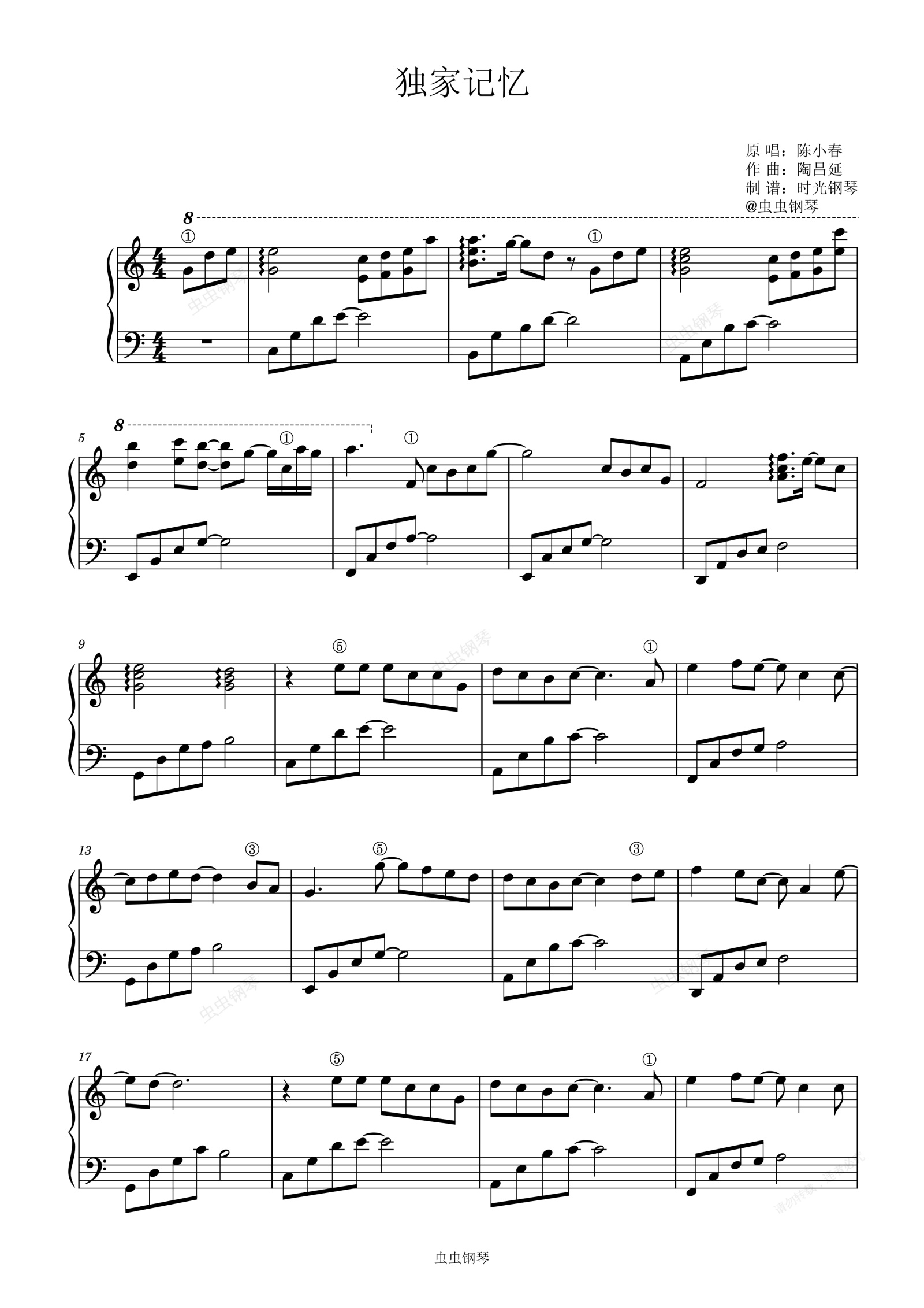 钢琴谱:独家记忆