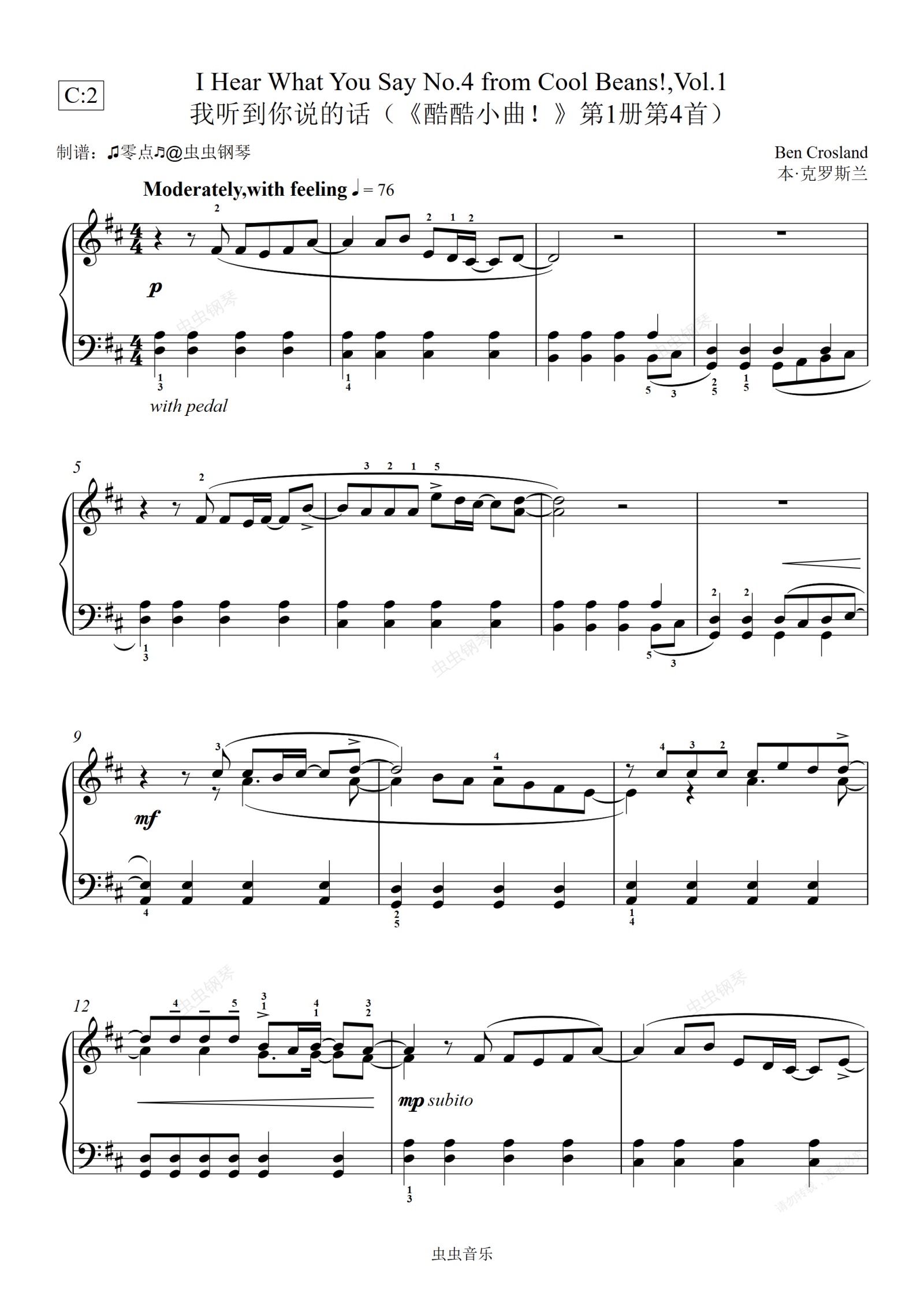 钢琴谱:8. 我听到你说的话 本·克罗斯兰
