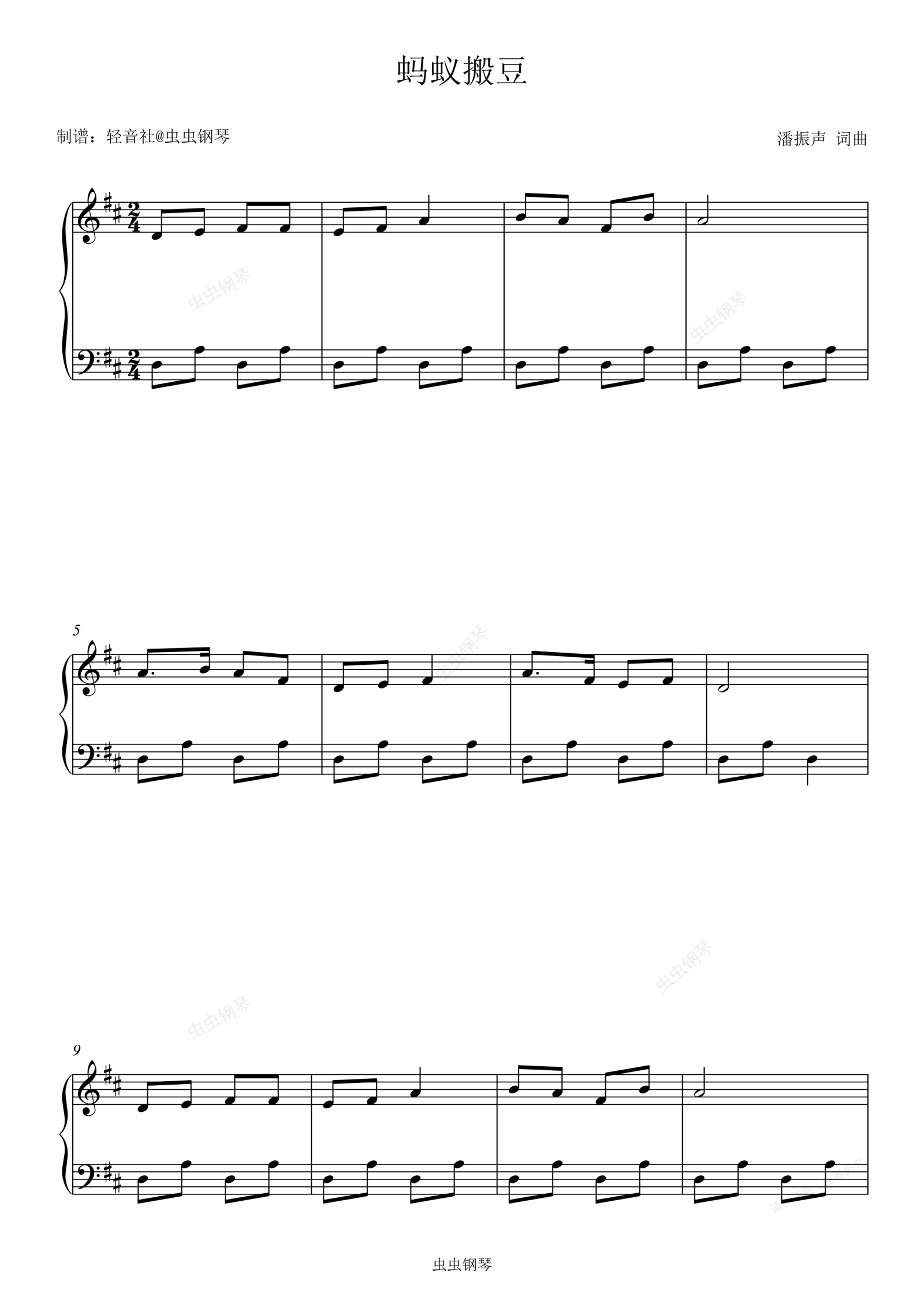 钢琴谱:《蚂蚁搬豆》简单好弹好听儿童易学