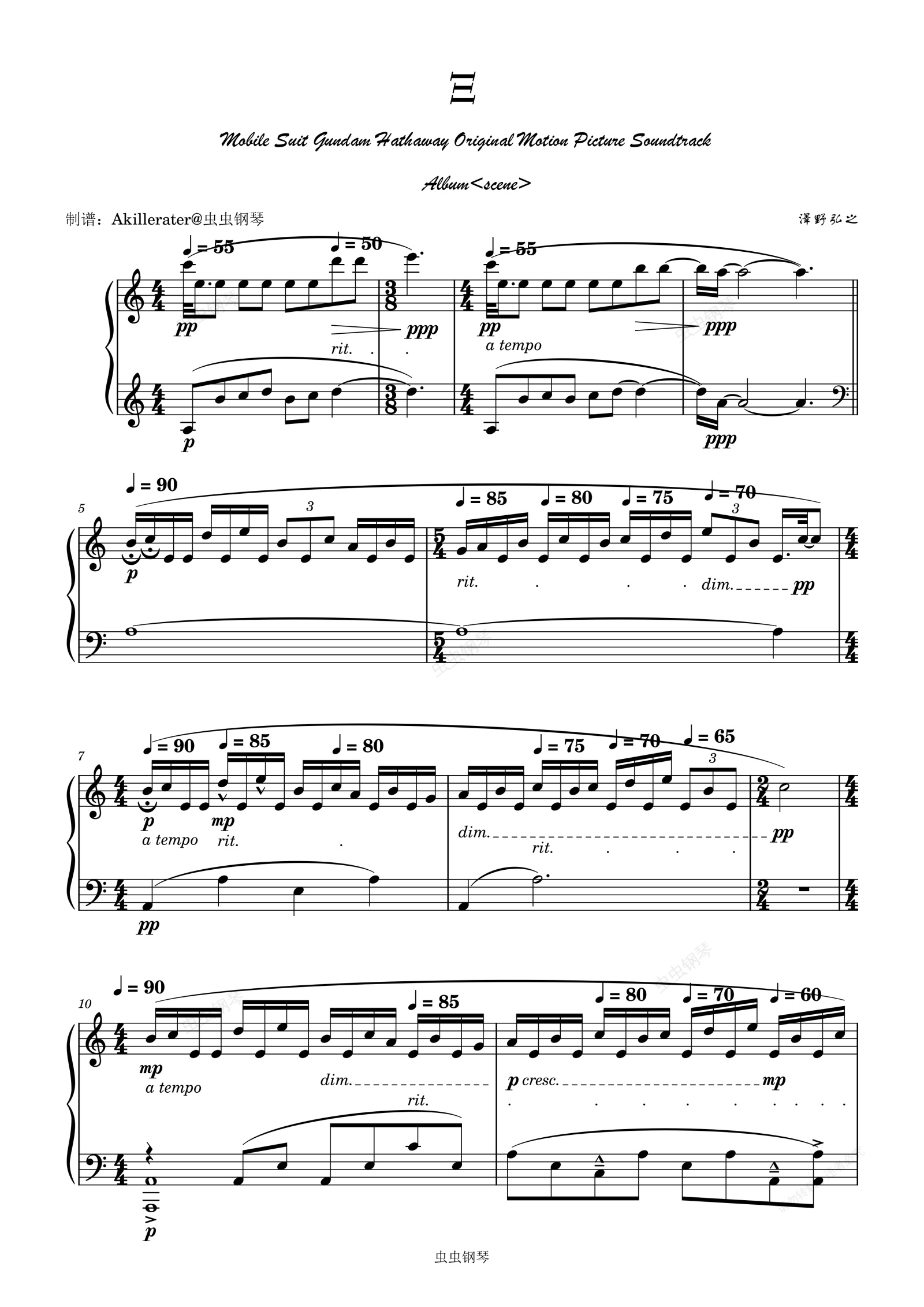 钢琴谱:Ξ(《机动战士高达:闪光的哈萨维》泽野弘之scene专辑钢琴版)