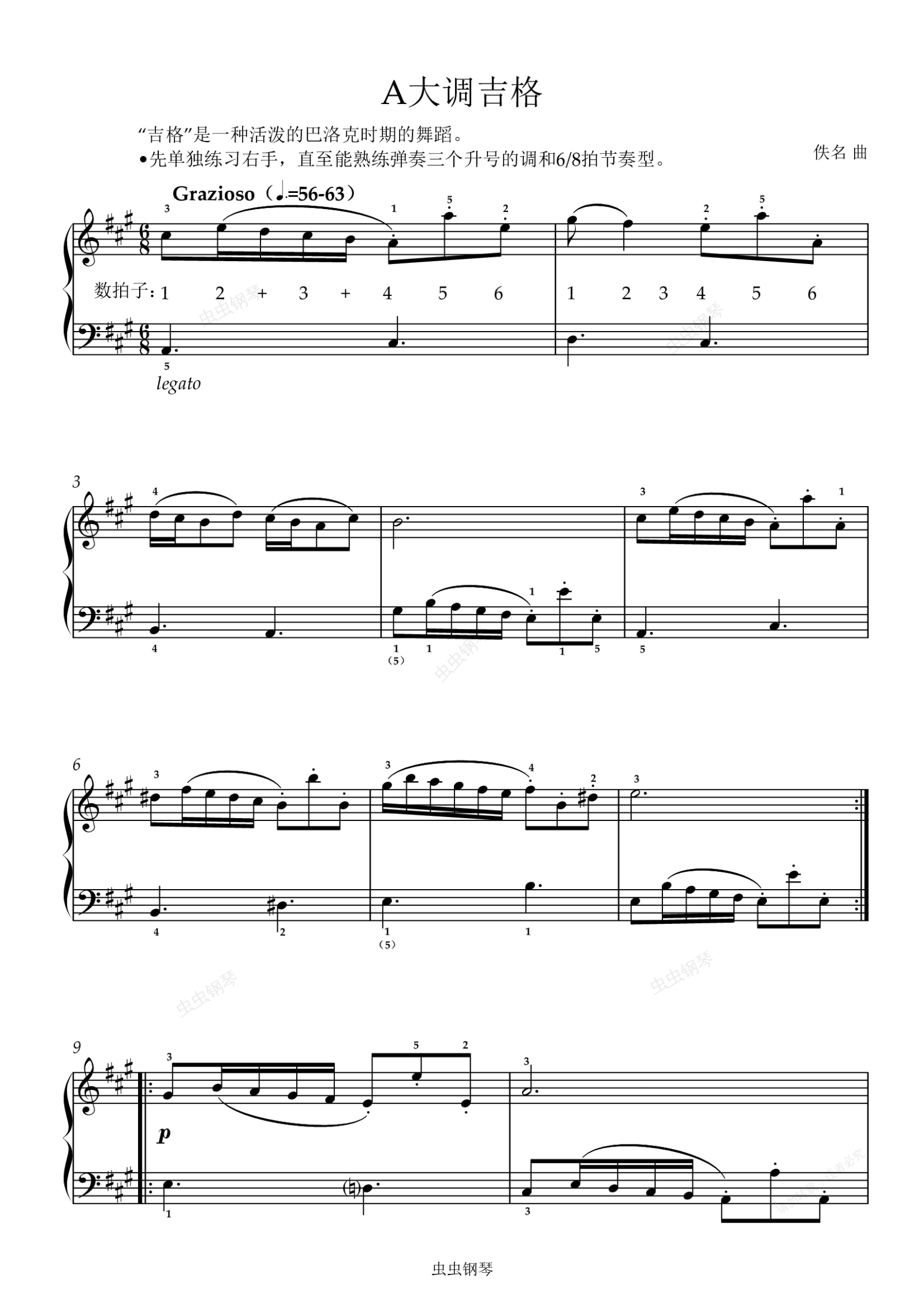 钢琴谱:7-5. A大调吉格