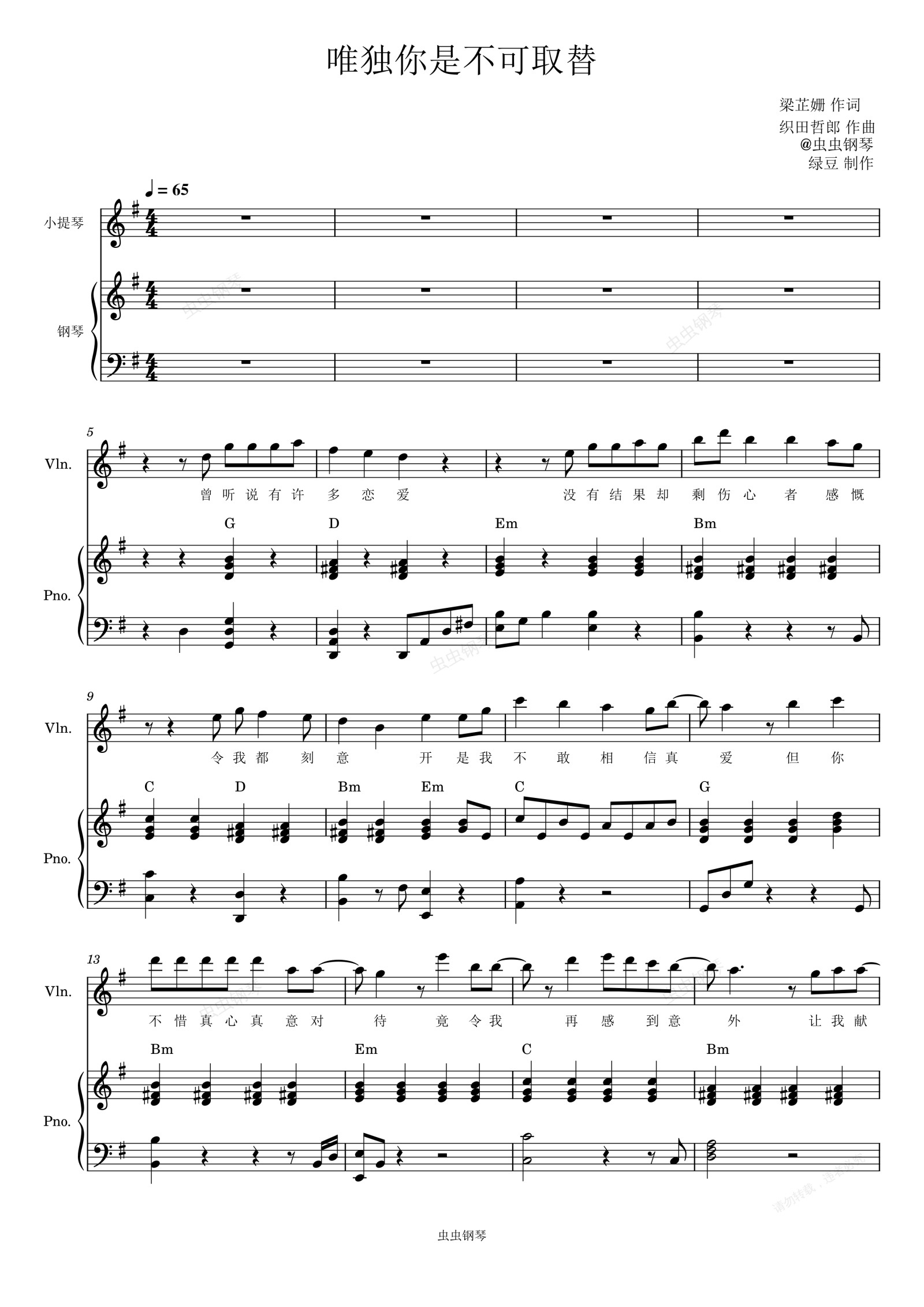 钢琴谱:唯独你是不可取替-钢琴弹唱谱
