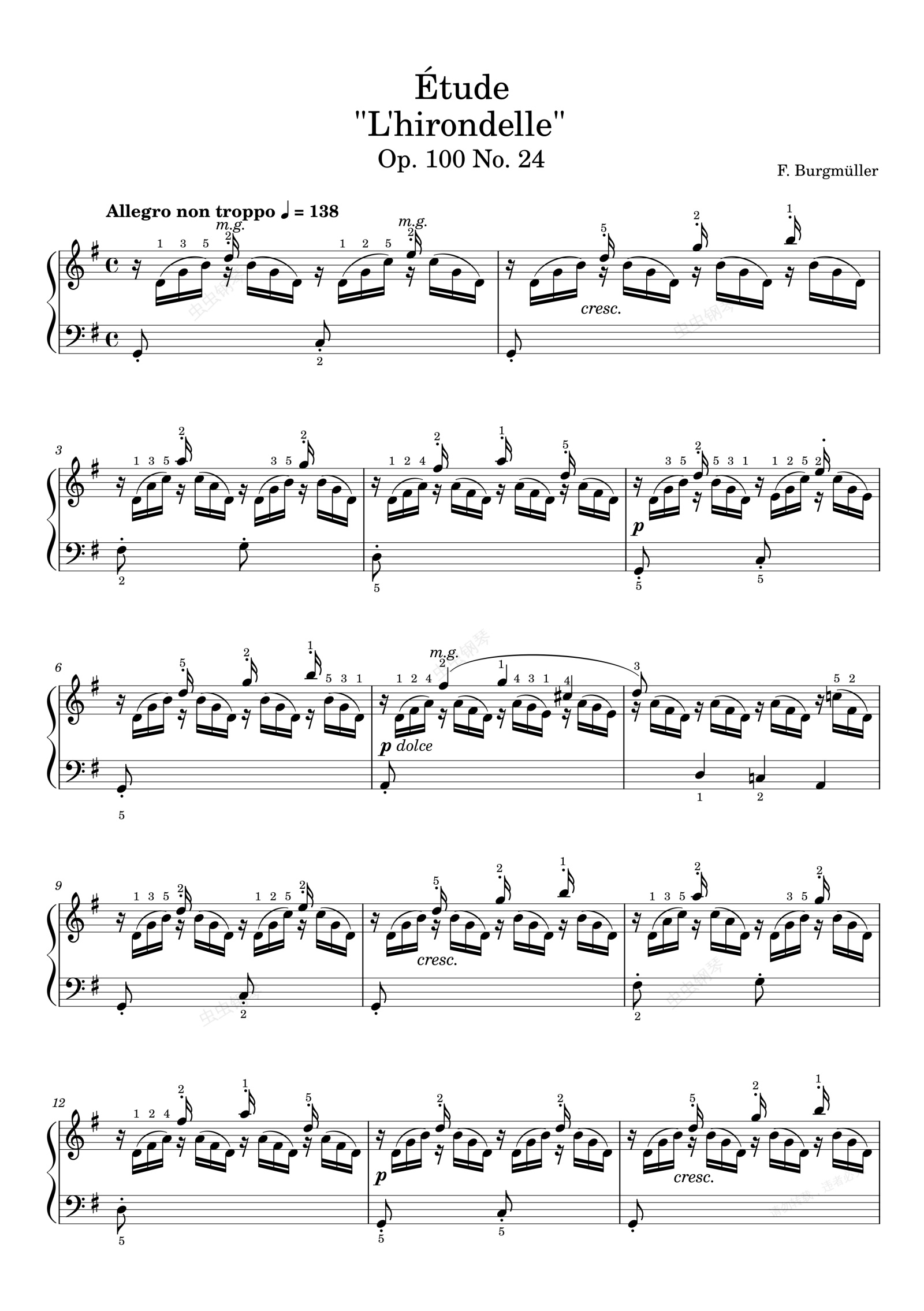 钢琴谱:Étude Op. 100 No. 24 The Swallow