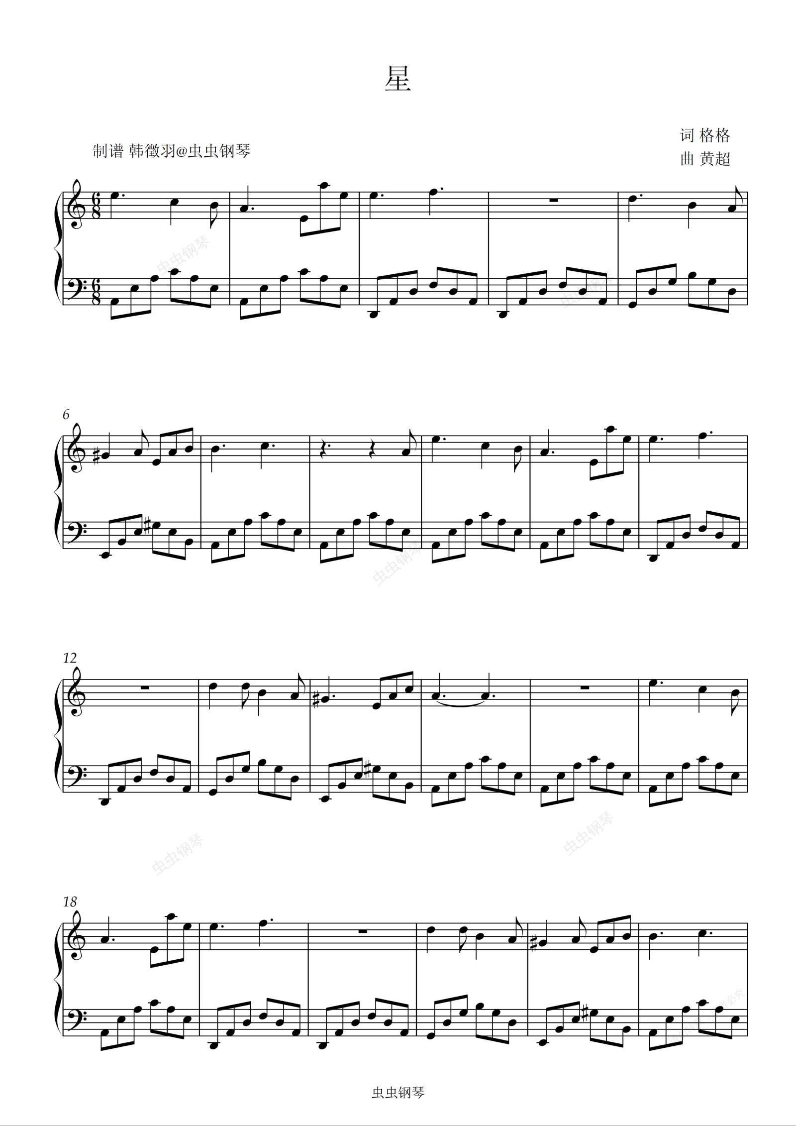 钢琴谱:星 杨宗纬C调 初学者 好听易弹