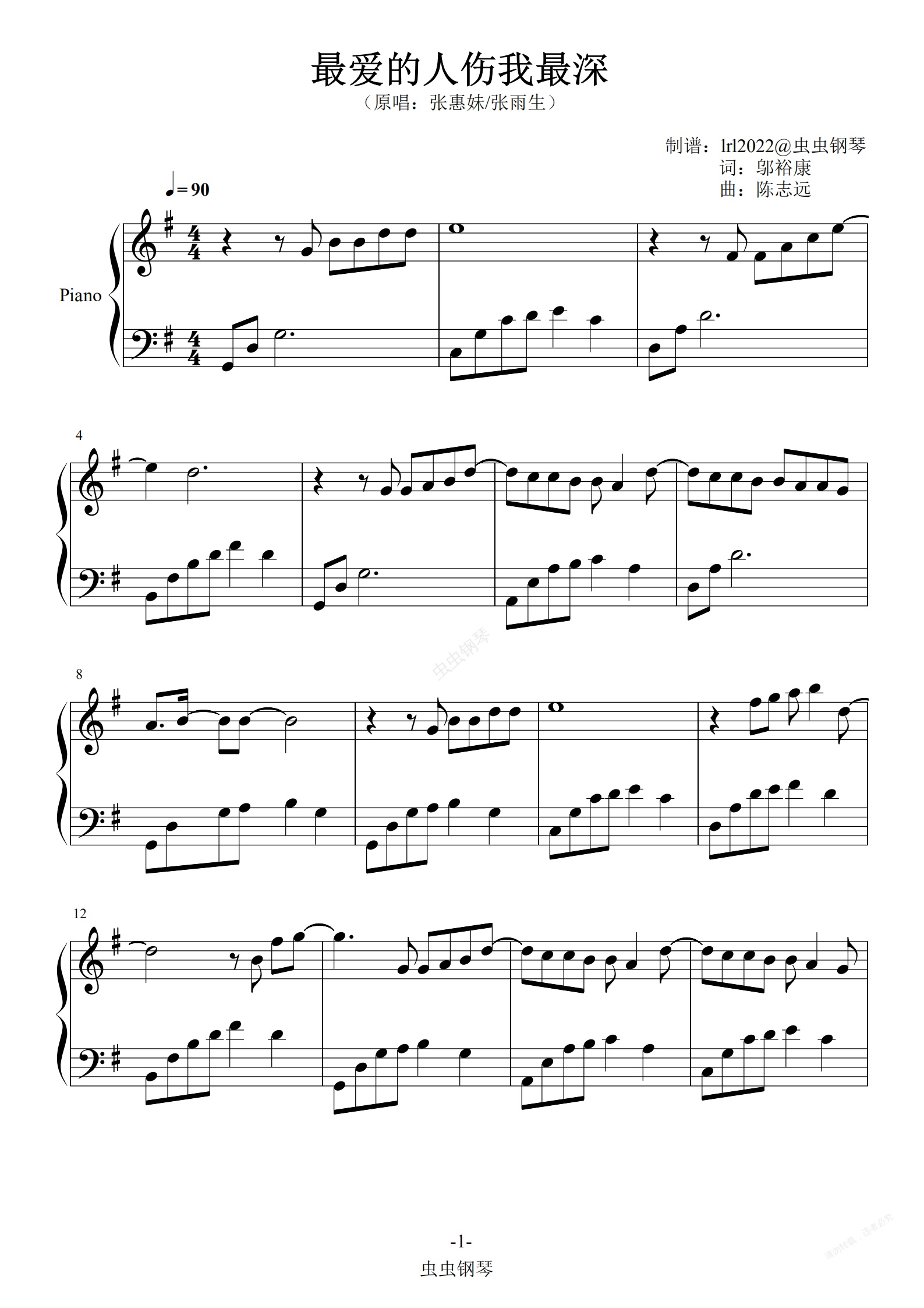 钢琴谱:最爱的人伤我最深-五线谱-独奏版-钢琴谱