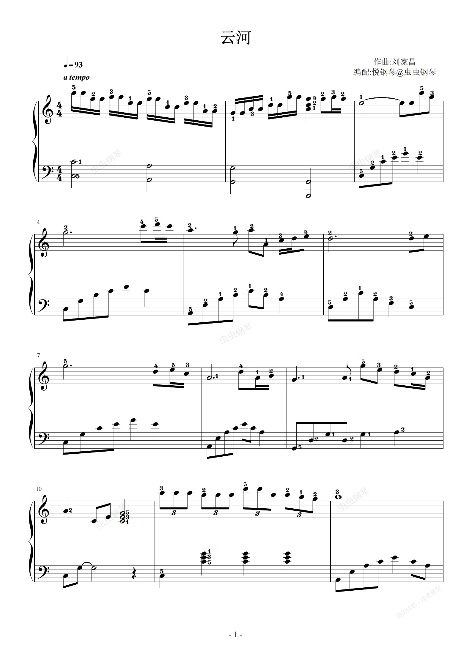 钢琴谱:云河 (怀旧经典)邓丽君