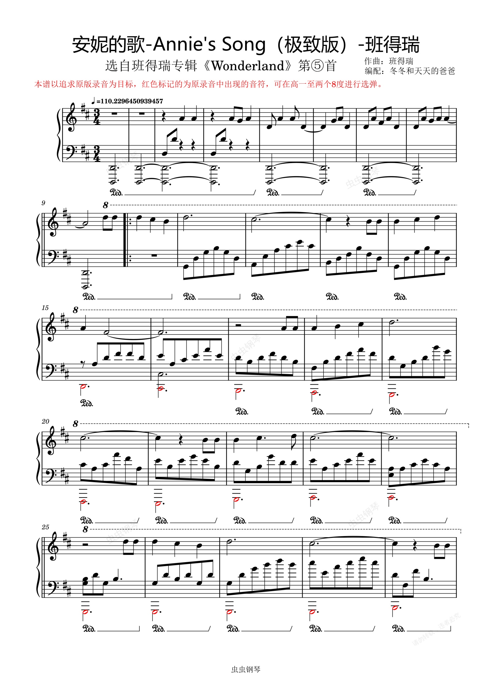钢琴谱:安妮的歌-Annie's Song(极致版)-班得瑞