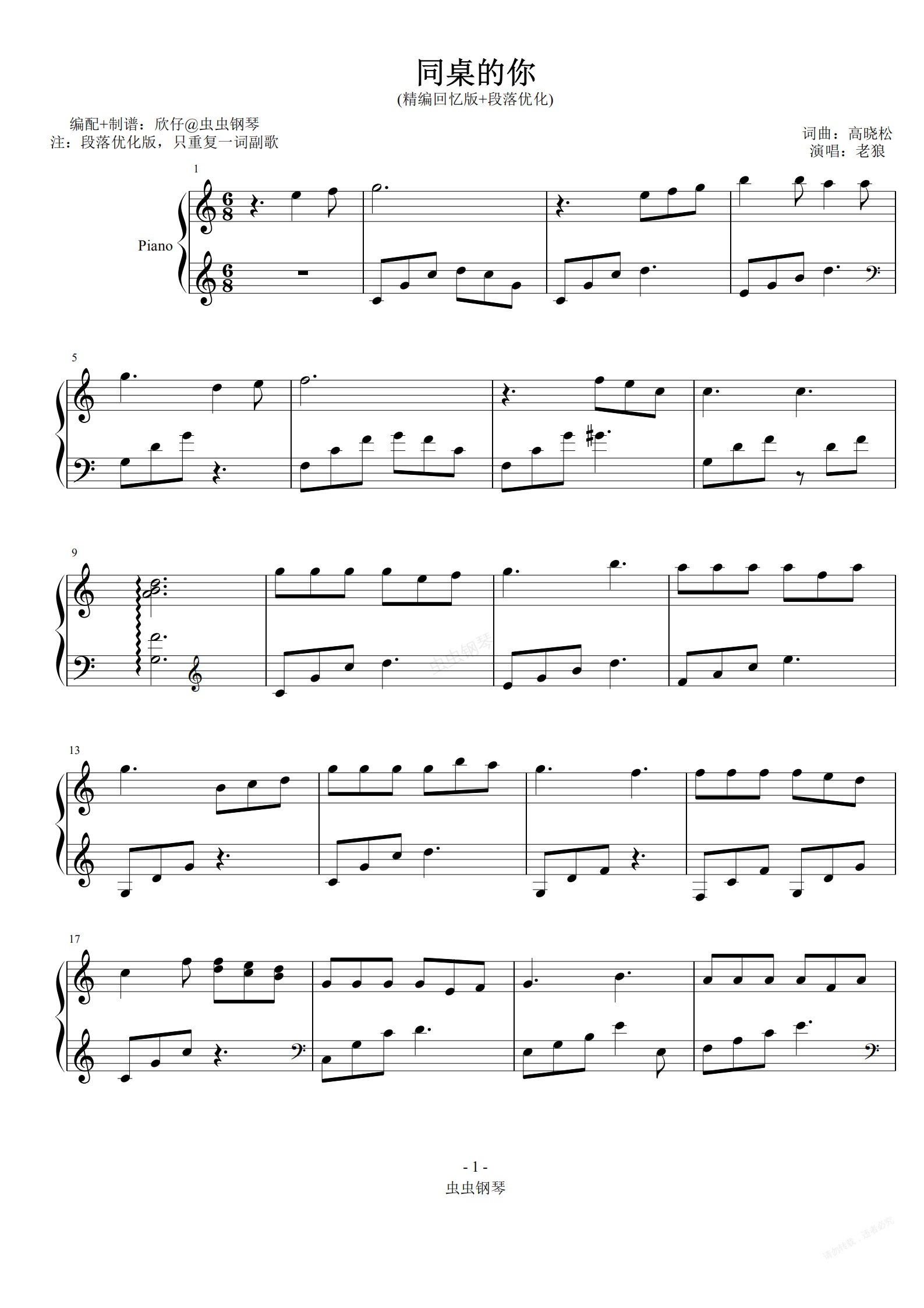 钢琴谱:精编回忆版-C《同桌的你》(原唱:老狼、段落优化)