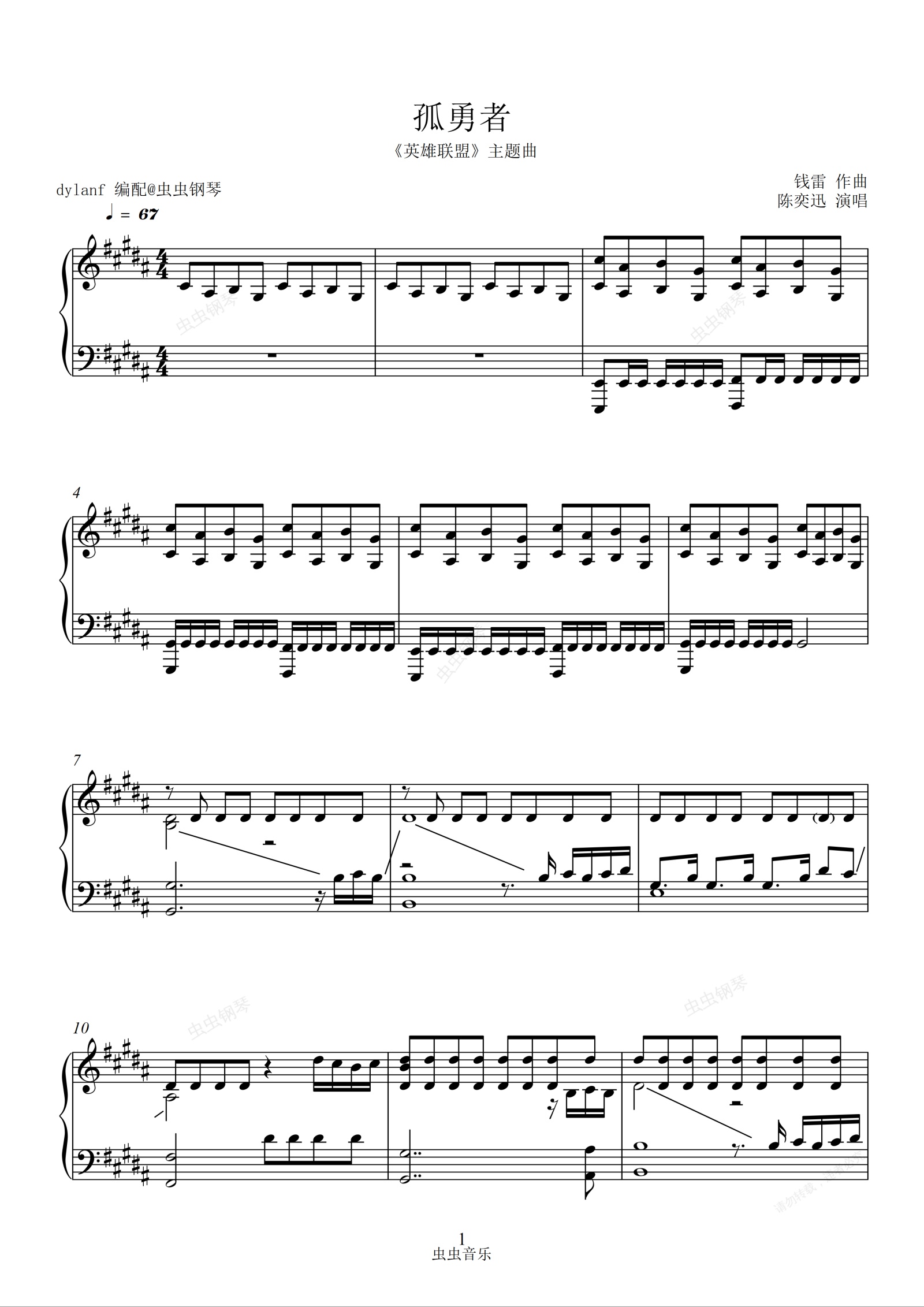 钢琴谱:演奏版《孤勇者》好听易弹《英雄联盟》主题曲 陈奕迅