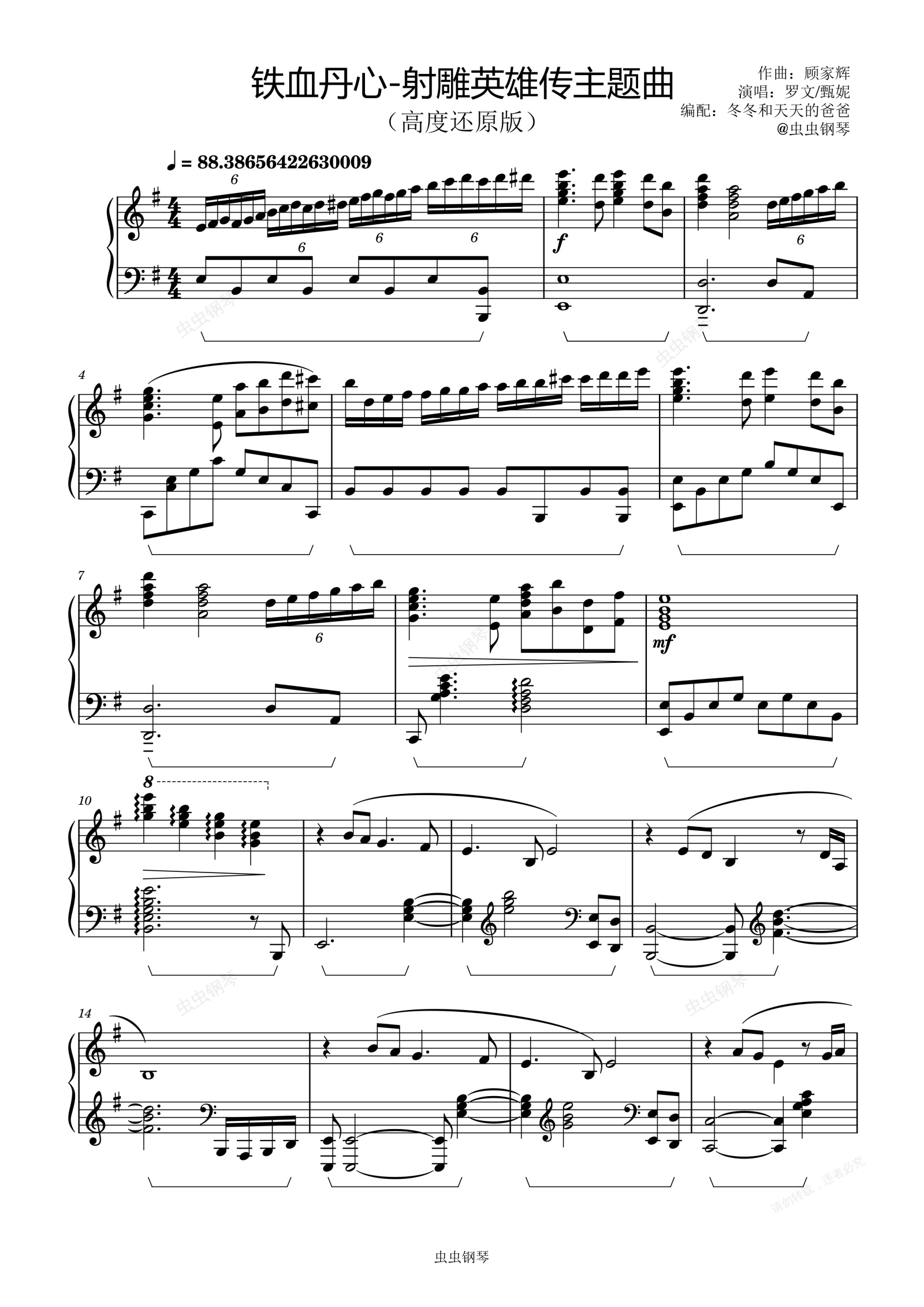 钢琴谱:铁血丹心-射雕英雄传主题曲-(高度还原版)