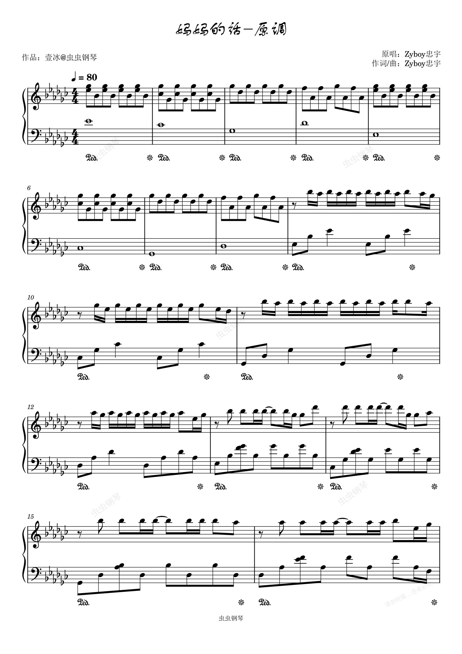 钢琴谱:妈妈的话//Zyboy忠宇-原调