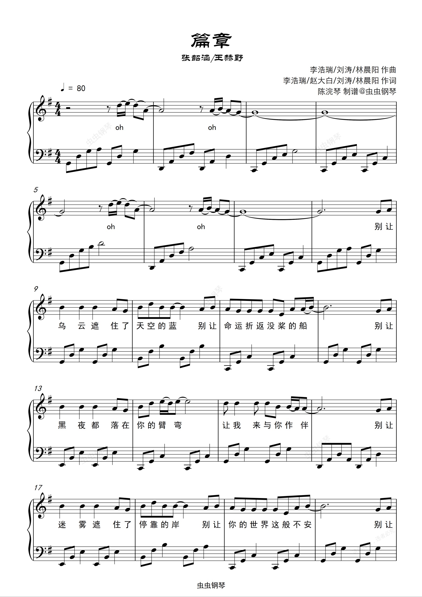 钢琴谱:篇章-简单版