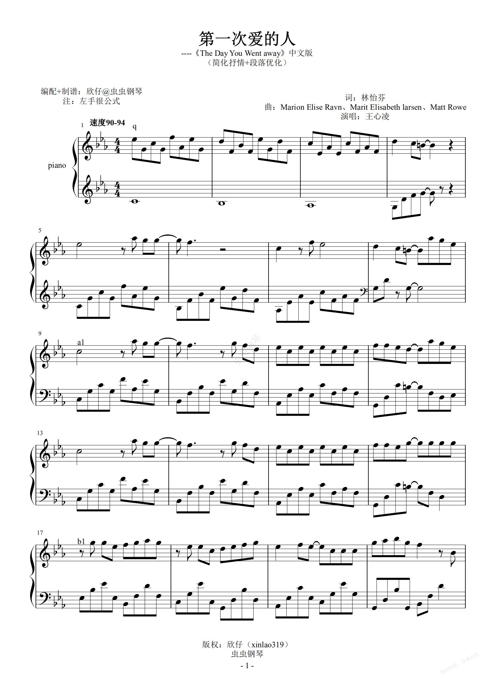 钢琴谱:王心凌-降E《第一次爱的人》(简化抒情+段落优化)