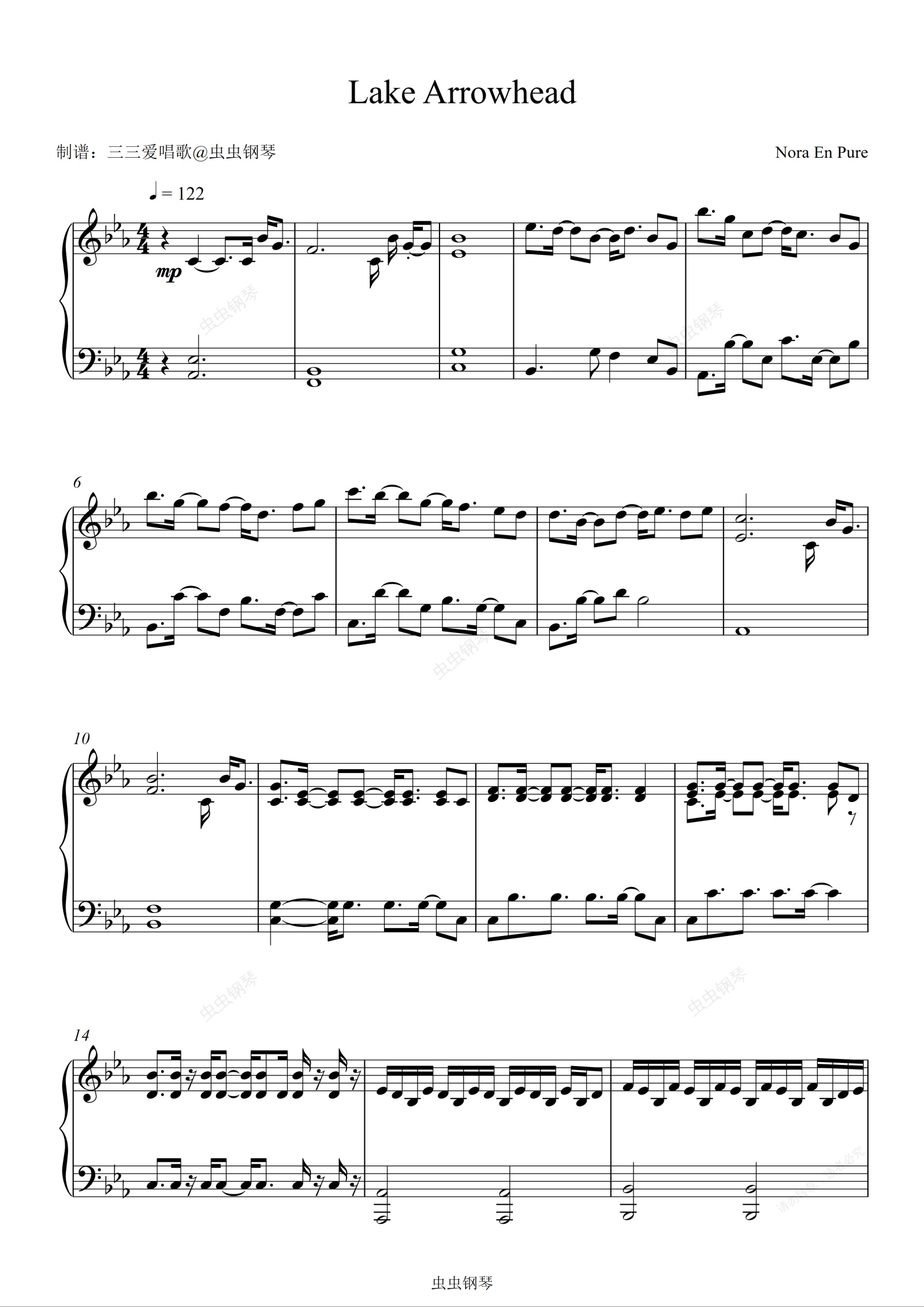 钢琴谱:Lake Arrowhead - 高还原钢琴独奏【易弹简化版】