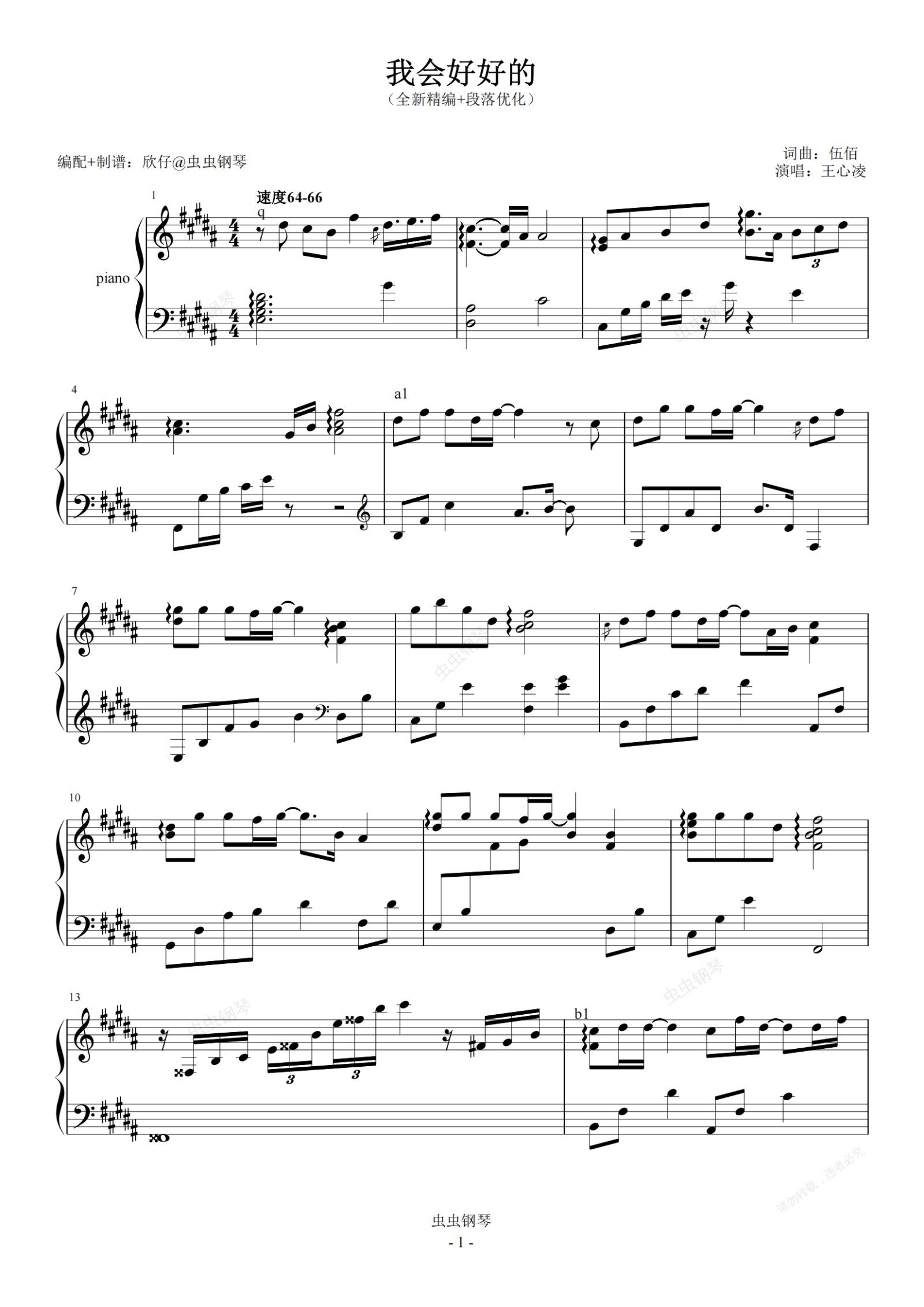 钢琴谱:王心凌-B《我会好好的》(全新精编+段落优化)