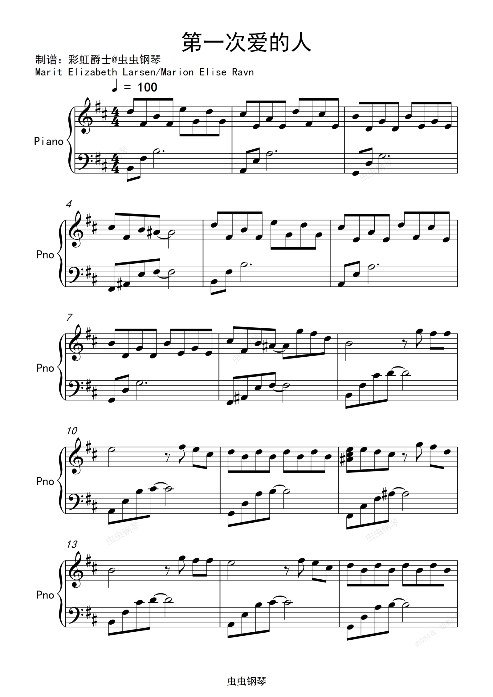 钢琴谱:第一次爱的人 王心凌 钢琴完整版