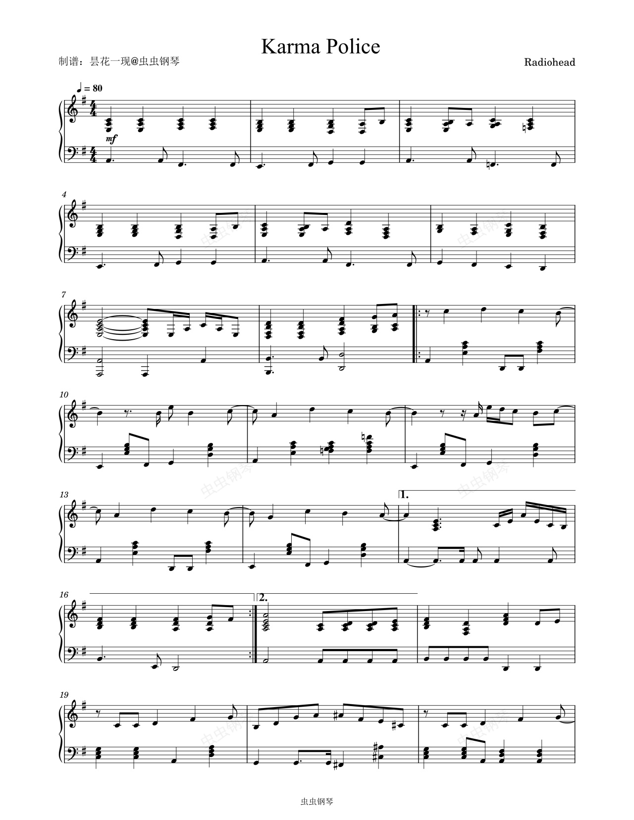钢琴谱:Karma Police - Radiohead