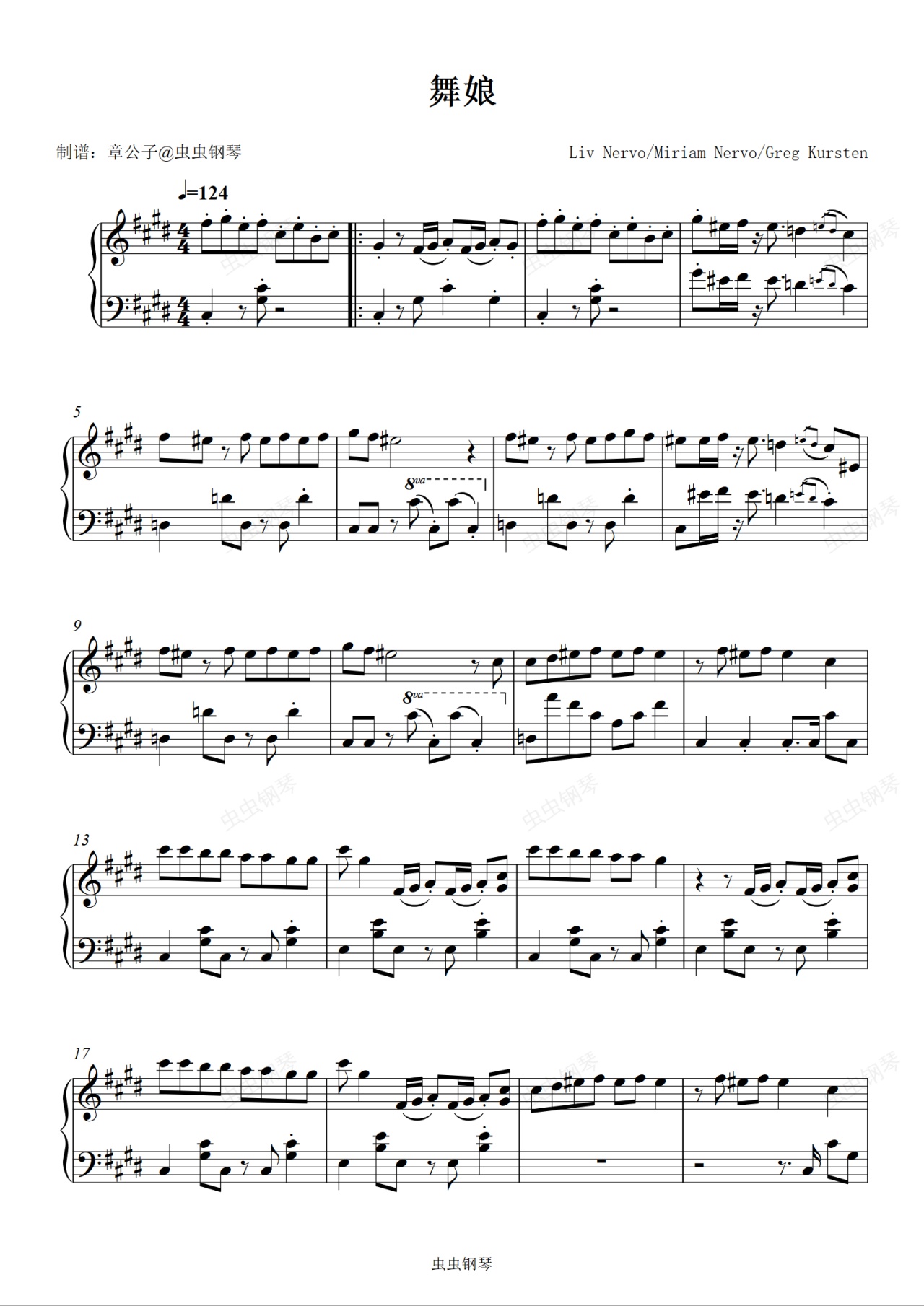 钢琴谱:《舞娘》- 蔡依林 独奏谱