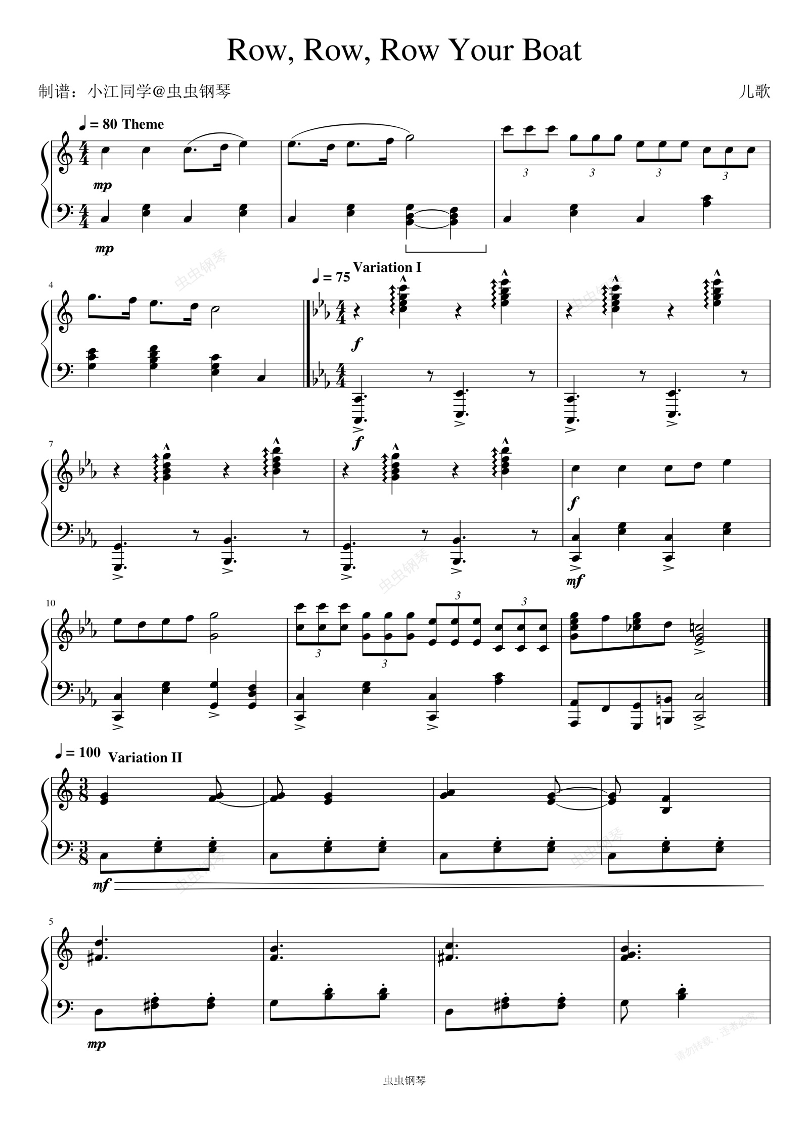 钢琴谱:Row, Row, Row Your Boat 不同风格改编