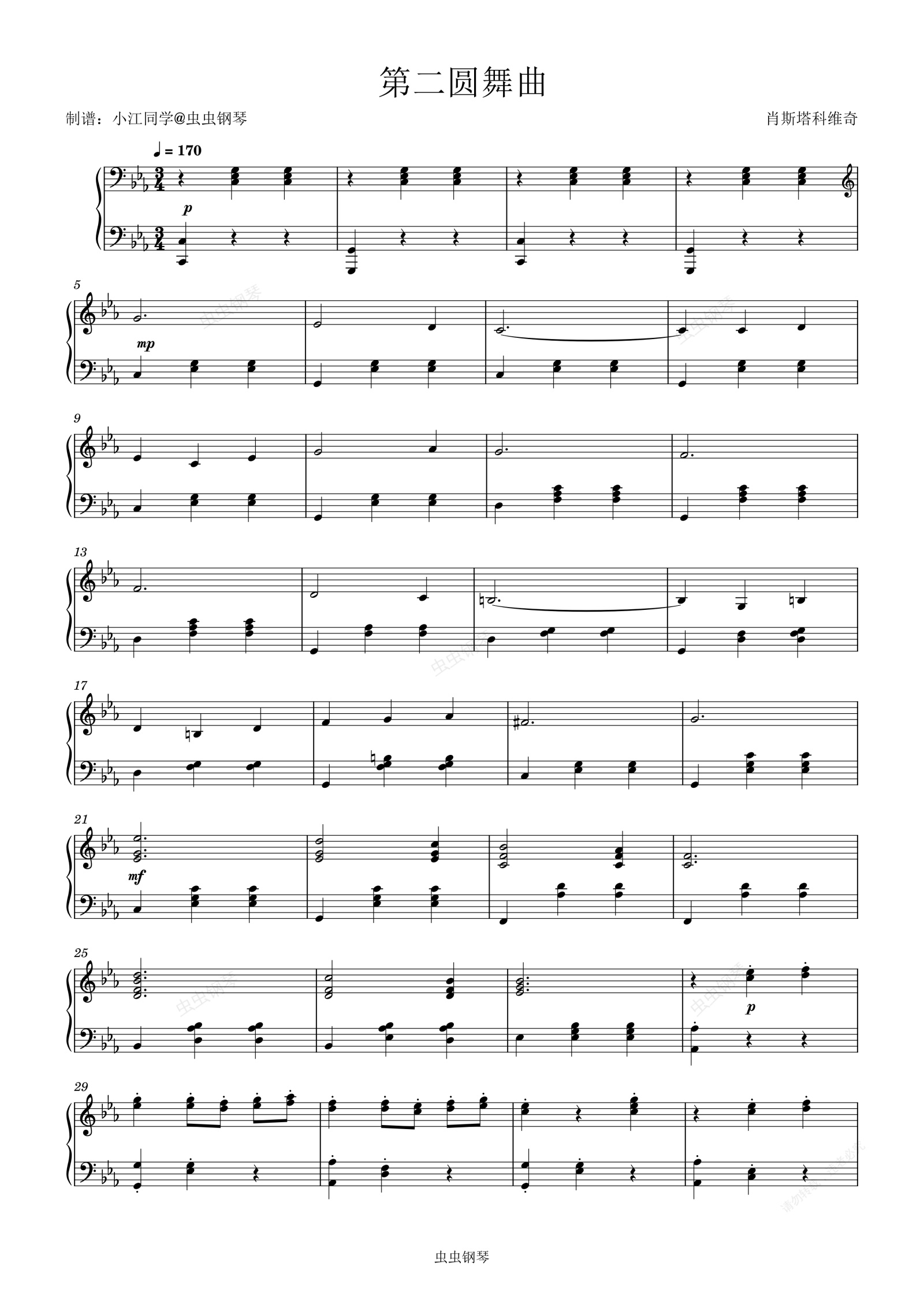 钢琴谱:第二圆舞曲 肖斯塔科维奇