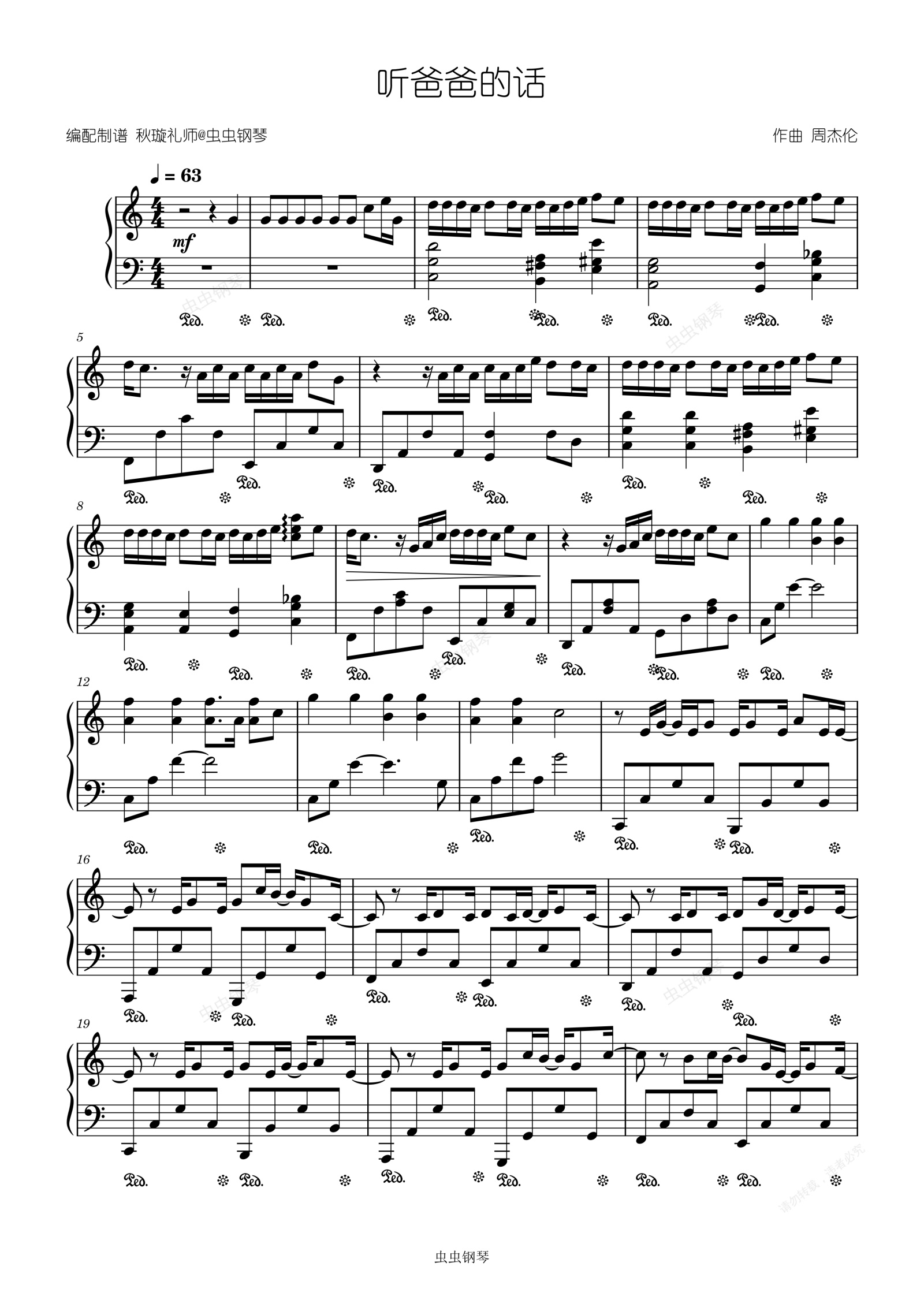钢琴谱:听爸爸的话—周杰伦[杰迷演奏级]