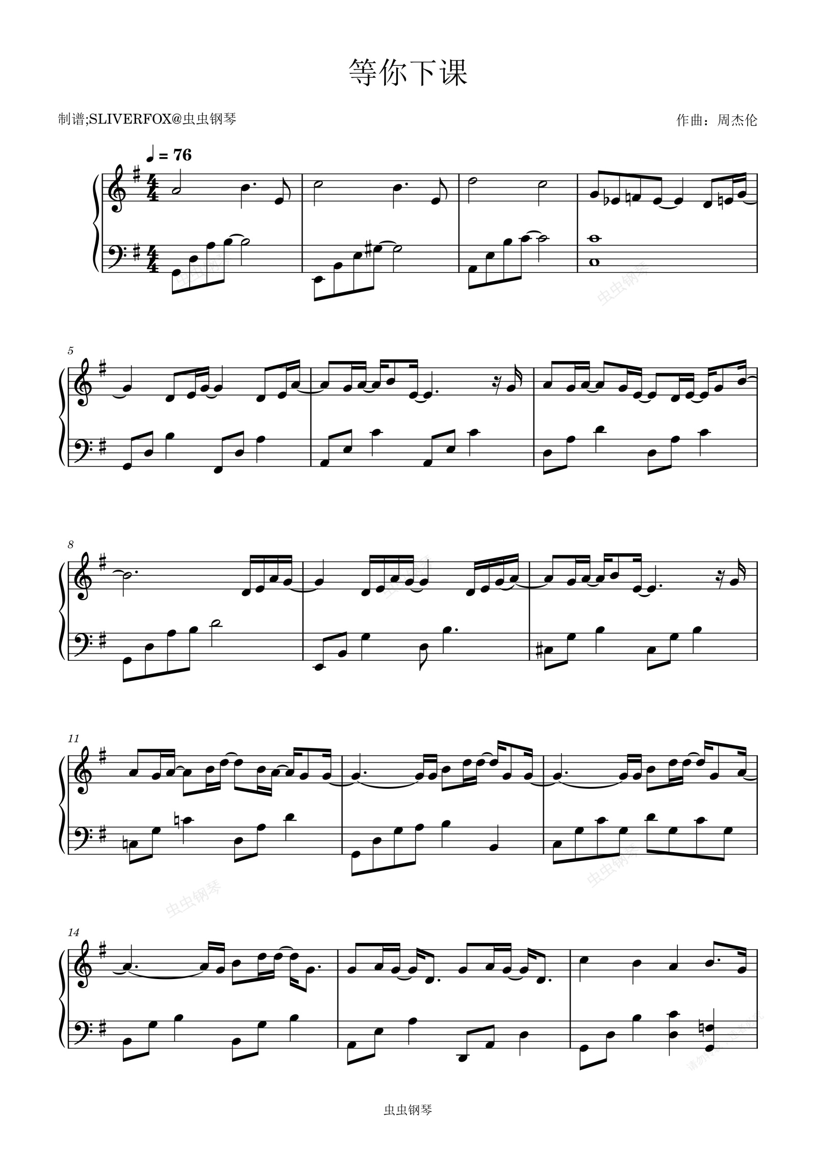 钢琴谱:《等你下课》 成人流行 G调钢琴版 周杰伦杨瑞代