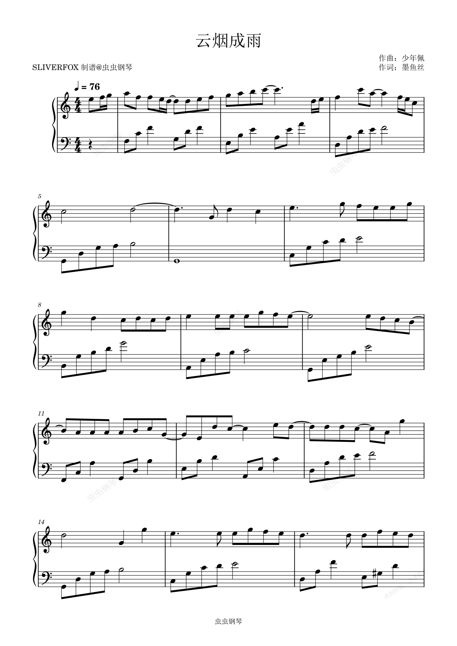 钢琴谱:《云烟成雨》 C调简易流行温柔版钢琴谱