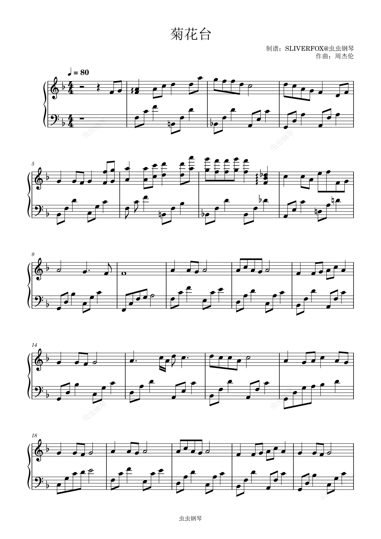 钢琴谱:《菊花台》 周杰伦成人流行F调钢琴谱